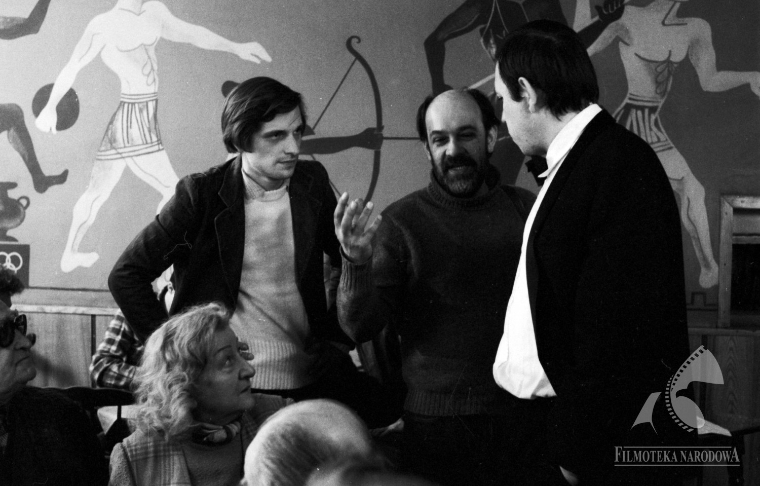 Na zdjęciu widoczni są: aktorzy Jan Łopuszniak (z lewej, w okularach), Lena Wilczyńska, Zbigniew Buczkowski (pierwszy z prawej), reżyser Antoni Krauze oraz współpracownik reżysera Piotr Łazarkiewicz.