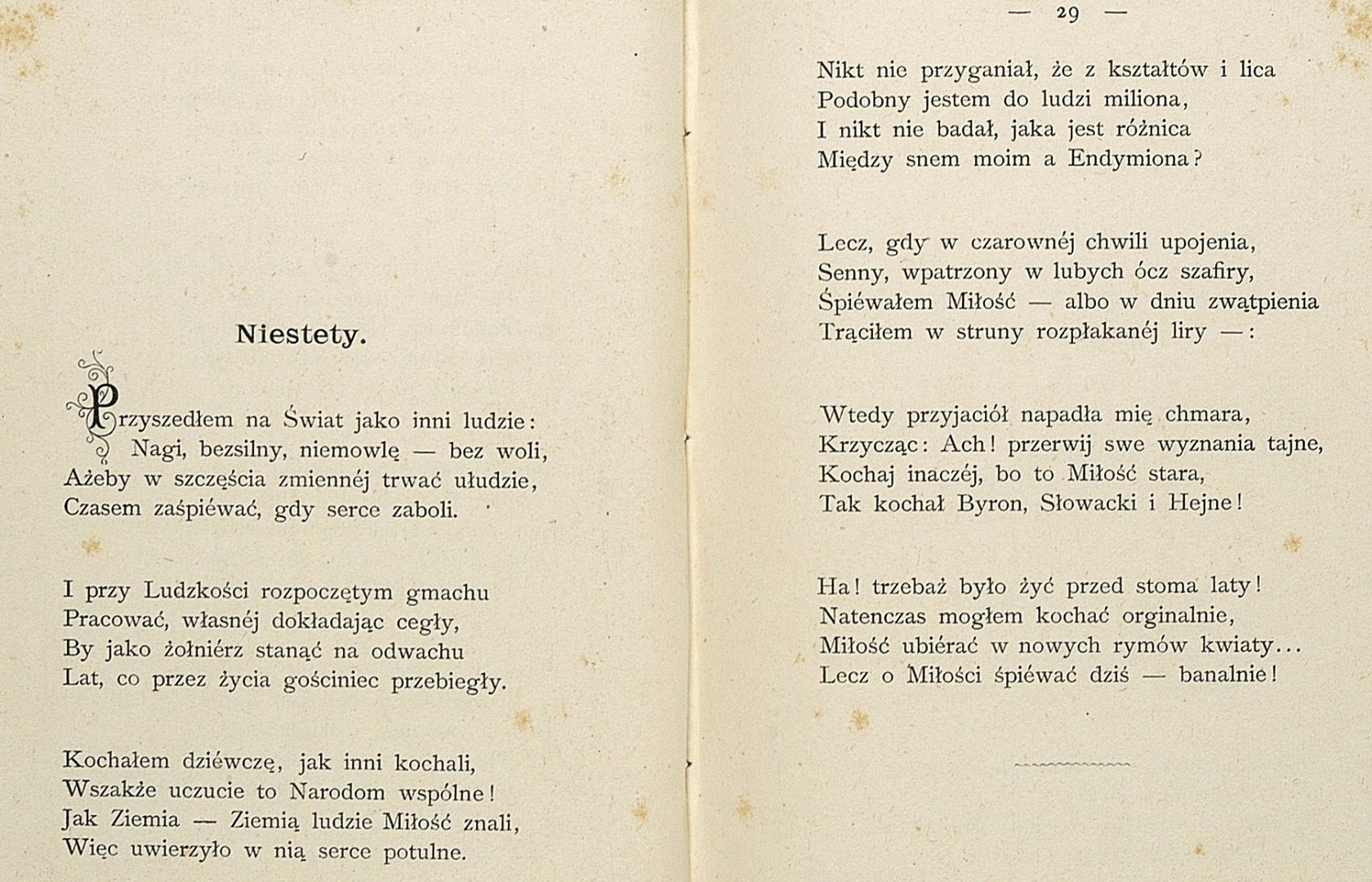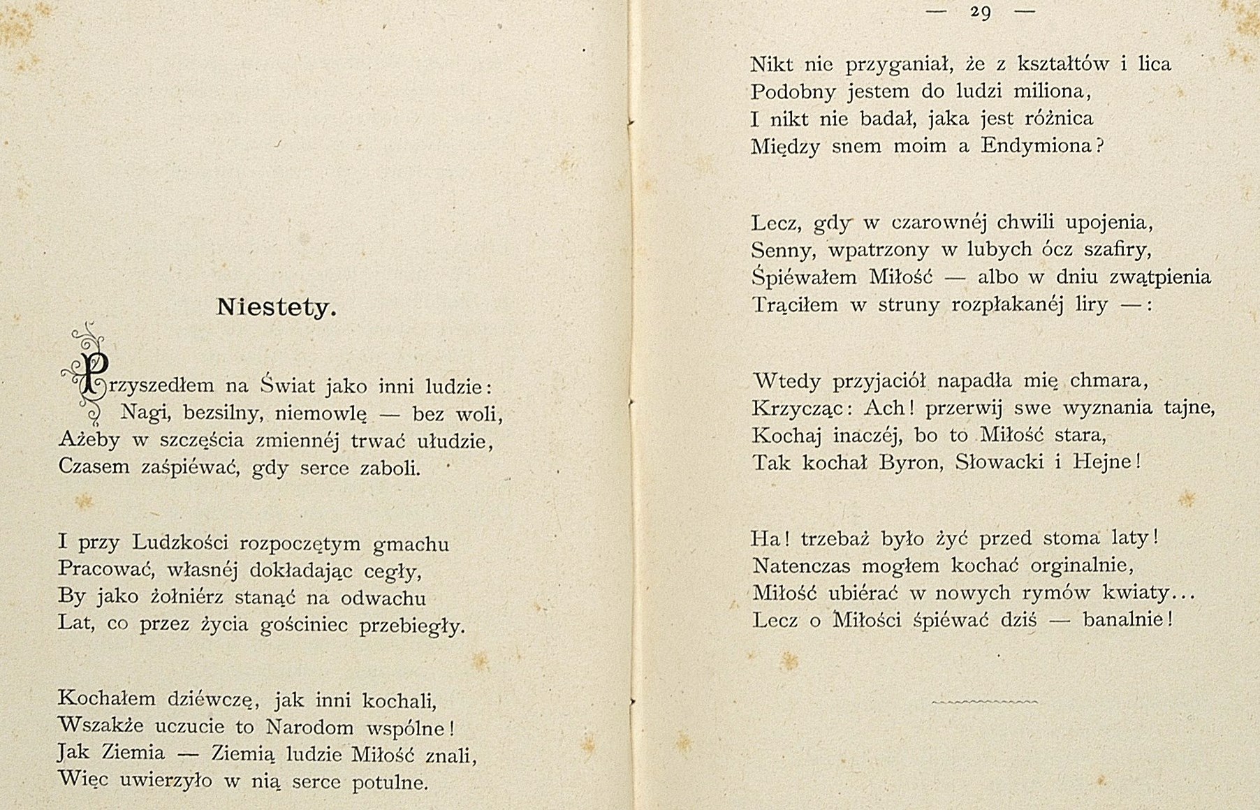 Jeden z wierszy z tomiku  "Poezye. 1" wydanego w 1889 roku w Krakowie nakładem autora przez Wł. L. Anczyca i Spółkę.