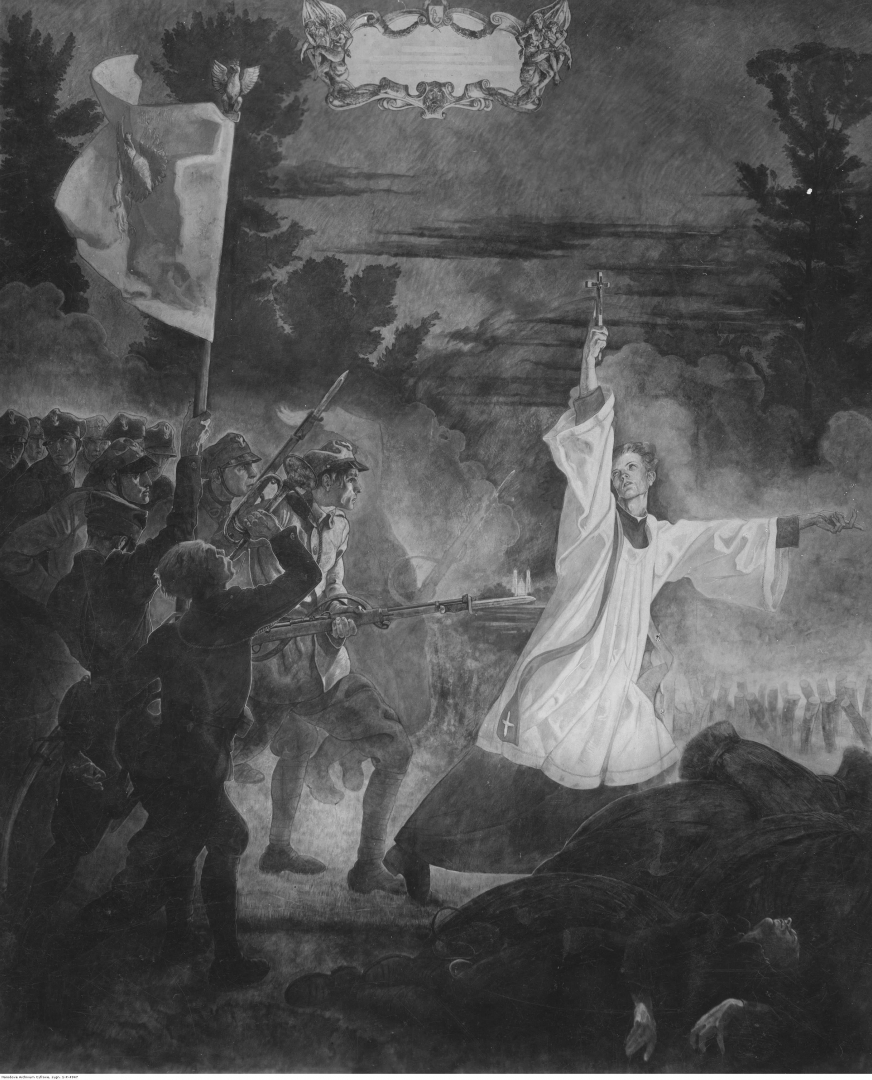 Obraz artysty malarza Jana Henryka Rosena "Śmierć księdza Skorupki"., [online] Warszawa: Narodowy Instytut Audiowizualny [dostęp 13.04.2026]. Dostępny w internecie: http://www.ipsb.nina.gov.pl/a/foto/obraz-artysty-malarza-jana-henryka-rosena-smierc-ksiedza-skorupki
