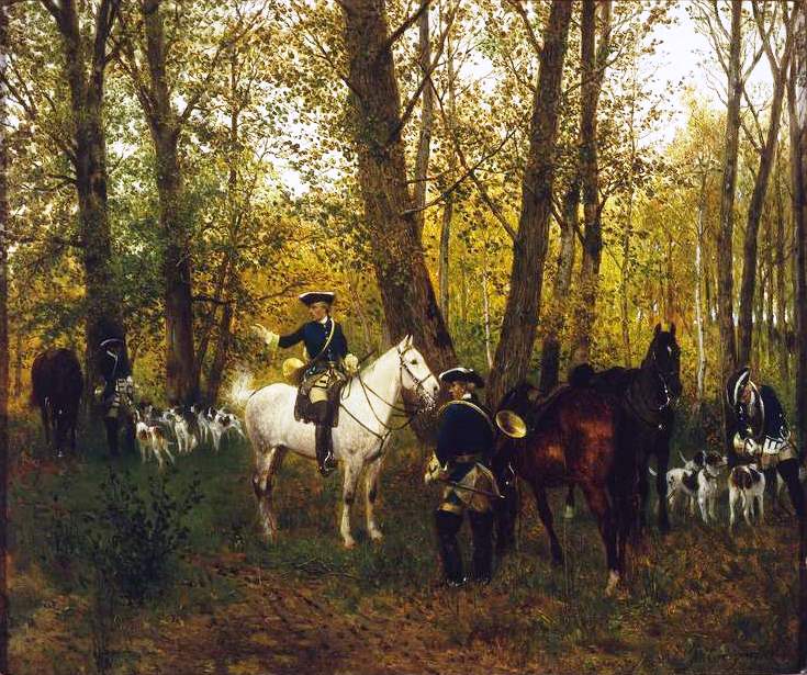 "Odpoczynek na polowaniu" Maksymiliana Gierymskiego., [online] Warszawa: Narodowy Instytut Audiowizualny [dostęp 13.04.2026]. Dostępny w internecie: http://www.ipsb.nina.gov.pl/a/foto/odpoczynek-na-polowaniu-maksymiliana-gierymskiego