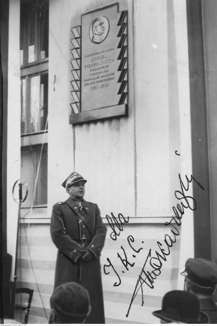 , Odsłonięcie tablicy pamiątkowej ku czci marszałka Józefa Piłsudskiego w Drohobyczu na Domu Legionowo-Strzeleckim w listopadzie 1938 roku., [w:] Polski słownik biograficzny, t. ,