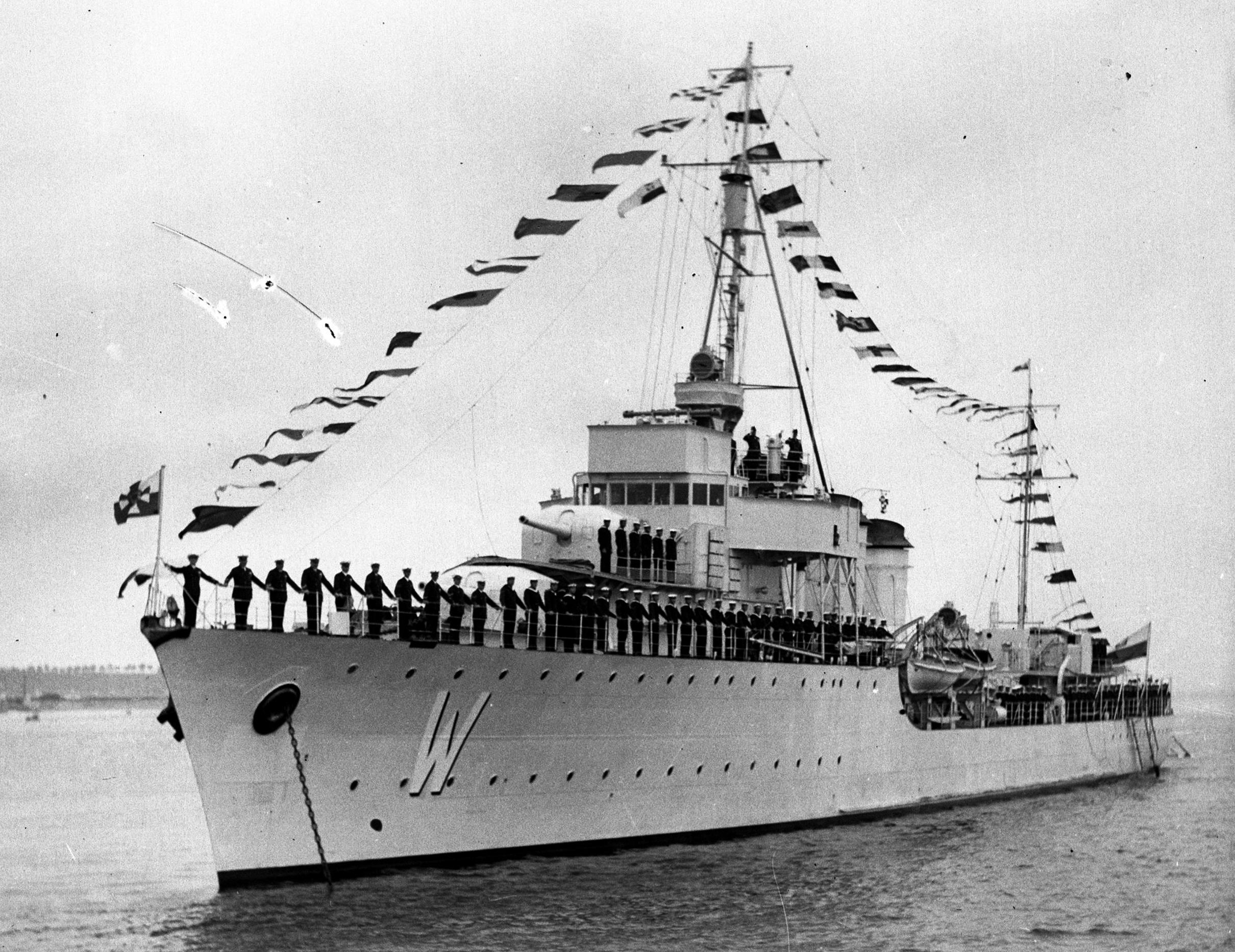 ORP "Wicher" w gali banderowej podczas nabożeństwa na molo w porcie gdyńskim podczas obchodów Święta Morza w Gdyni, 31.07.1932 r., [online] Warszawa: Narodowy Instytut Audiowizualny [dostęp 02.04.2026]. Dostępny w internecie: http://www.ipsb.nina.gov.pl/a/foto/orp-wicher-w-gali-banderowej-podczas-nabozenstwa-na-molo-w-porcie-gdynskim-podczas-obchodow-swieta-morza-w-gdyni-31071932-r