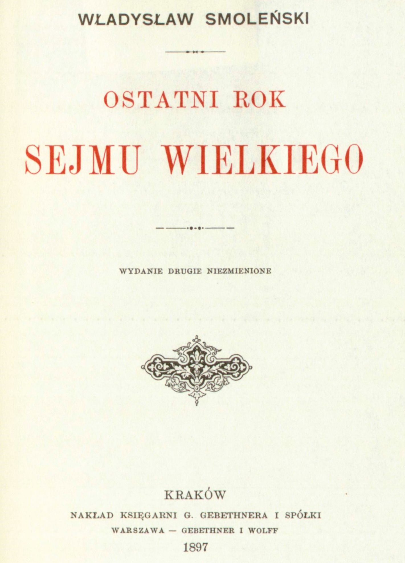 , "Ostatni rok Sejmu Wielkiego" Władysława Smoleńskiego., [w:] Polski słownik biograficzny, t. ,