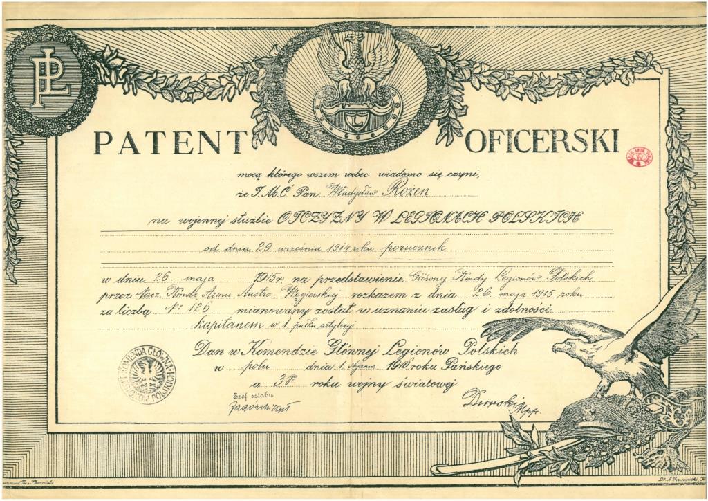 Patent oficerski Władysława Rożena., [online] Warszawa: Narodowy Instytut Audiowizualny [dostęp 14.04.2026]. Dostępny w internecie: http://www.ipsb.nina.gov.pl/a/foto/patent-oficerski-legionowy-wladyslawa-rozena