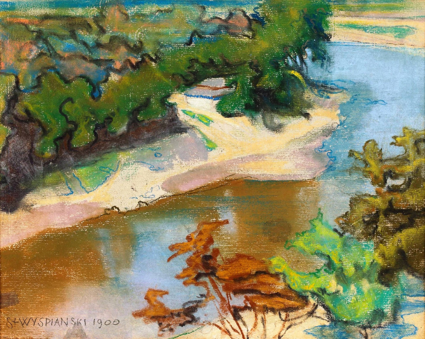 "Pejzaż z rzeką" Stanisława Wyspiańskiego., [online] Warszawa: Narodowy Instytut Audiowizualny [dostęp 13.04.2026]. Dostępny w internecie: http://www.ipsb.nina.gov.pl/a/foto/pejzaz-z-rzeka-stanislawa-wyspianskiego