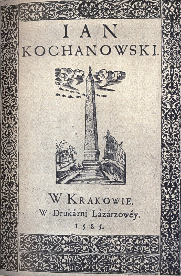 Pierwsze wydanie zbiorowe (dzieł Jana Kochanowskiego)., [online] Warszawa: Narodowy Instytut Audiowizualny [dostęp 13.04.2026]. Dostępny w internecie: http://www.ipsb.nina.gov.pl/a/foto/pierwsze-wydanie-zbiorowe-dziel-jana-kochanowskiego