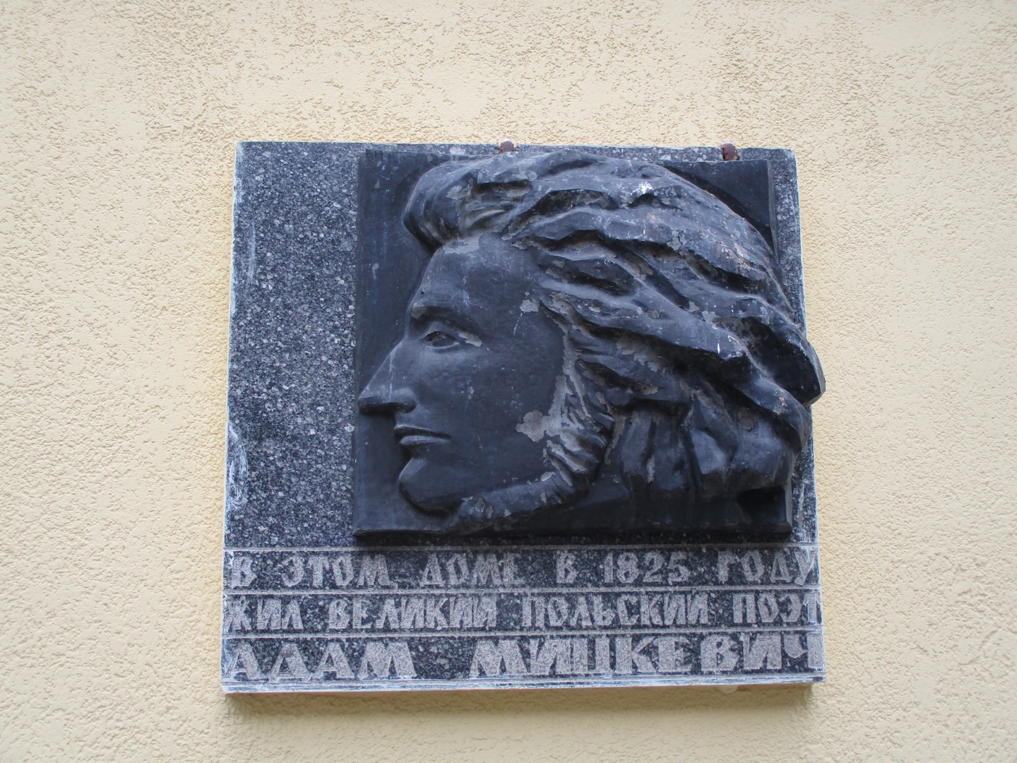 W 1824 roku Adam Mickiewicz udał się na zesłanie do Rosji, najpierw do Petersburga, a następnie w połowie lutego 1825 roku wyjechał do Odessy. Przebywał tam około dziewięciu miesięcy. Zamieszkał w samym centrum miasta, przy ul. Deribasowskiej16, aktywnie uczestnicząc w tamtejszym życiu towarzyskim. W tym okresie odbył dwumiesięczną podróż na Krym, która zainspirowała go do napisania "Sonetów krymskich".