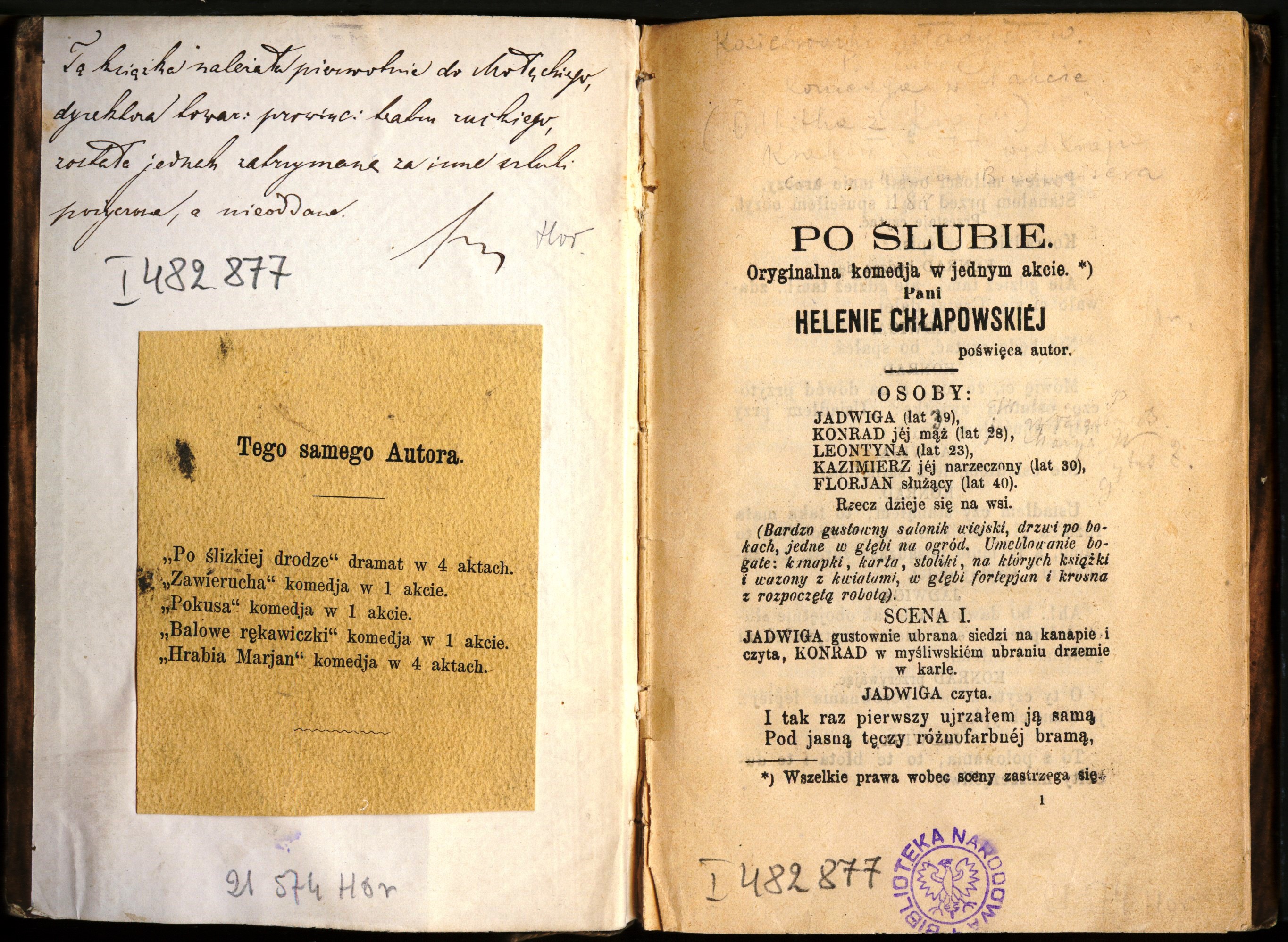 "Po ślubie : komedya w 1 akcie" Władysława Koziebrodzkiego., [online] Warszawa: Narodowy Instytut Audiowizualny [dostęp 16.04.2026]. Dostępny w internecie: http://www.ipsb.nina.gov.pl/a/foto/po-slubie-komedya-w-1-akcie-wladyslawa-koziebrodzkiego