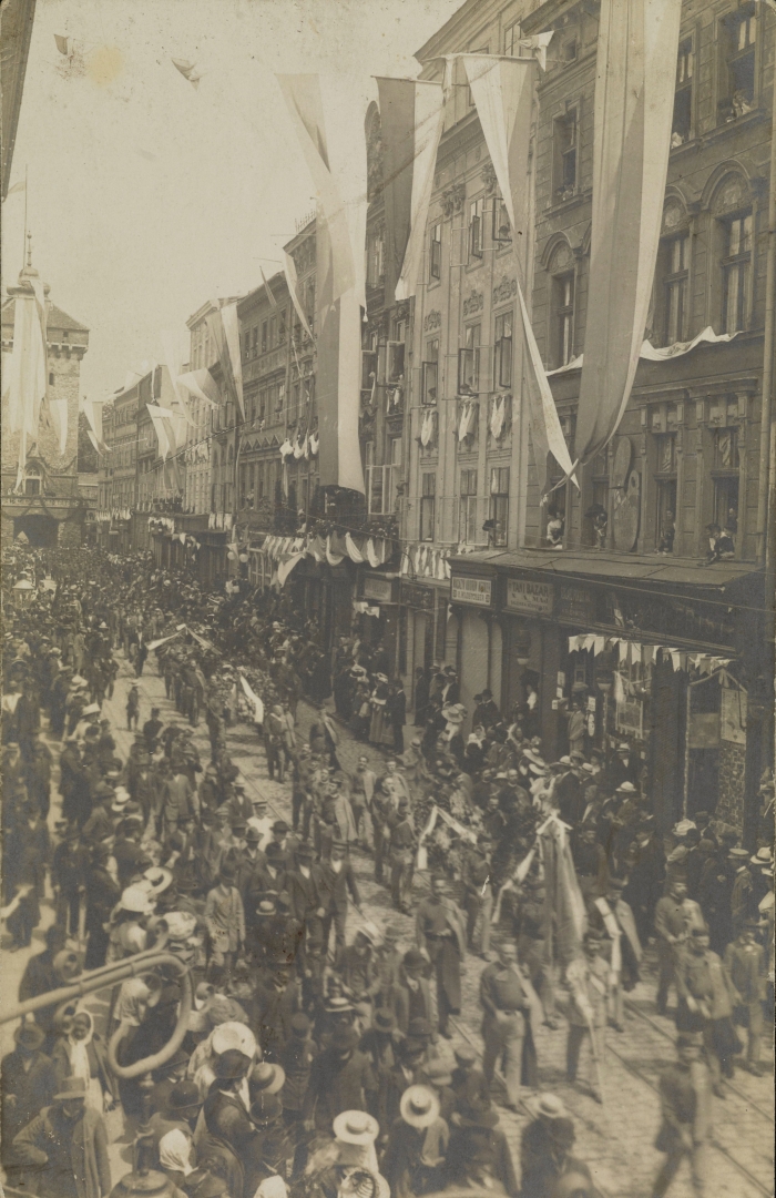 , Pochód z okazji odsłonięcia Pomnika grunwaldzkiego w Krakowie w 1910 roku., [w:] Polski słownik biograficzny, t. ,