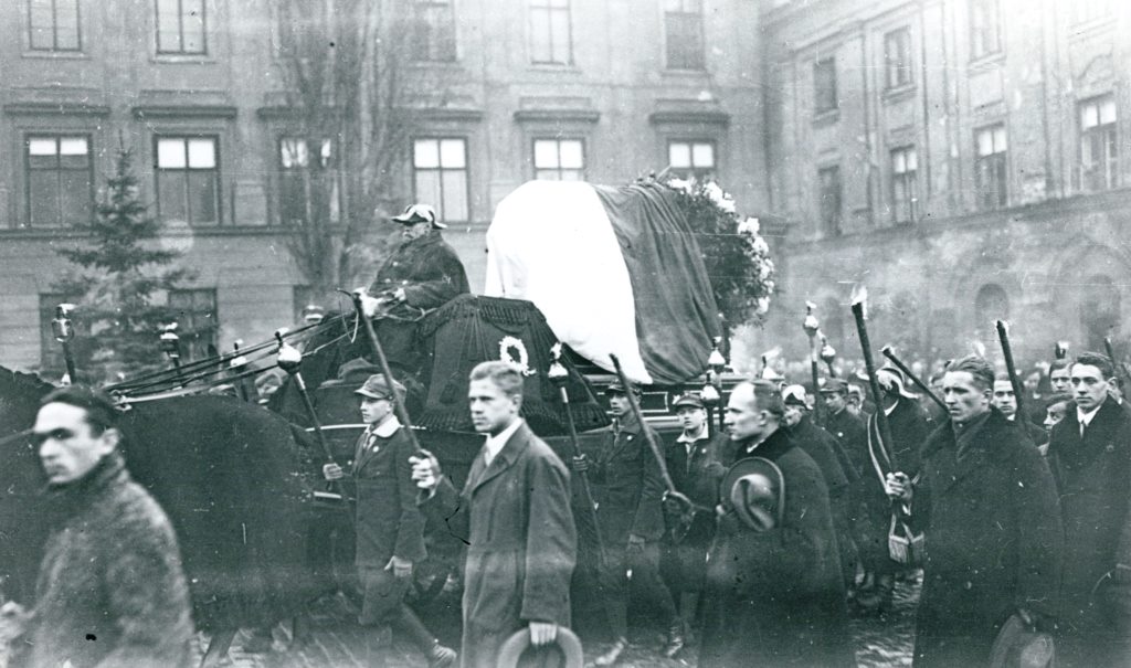 Pogrzeb Stefana Żeromskiego, kondukt pogrzebowy na ulicy w Warszawie 1925 r., [online] Warszawa: Narodowy Instytut Audiowizualny [dostęp 27.02.2026]. Dostępny w internecie: http://www.ipsb.nina.gov.pl/a/foto/pogrzeb-stefana-zeromskiego-kondukt-pogrzebowy-na-ulicy-w-warszawie-1925-r