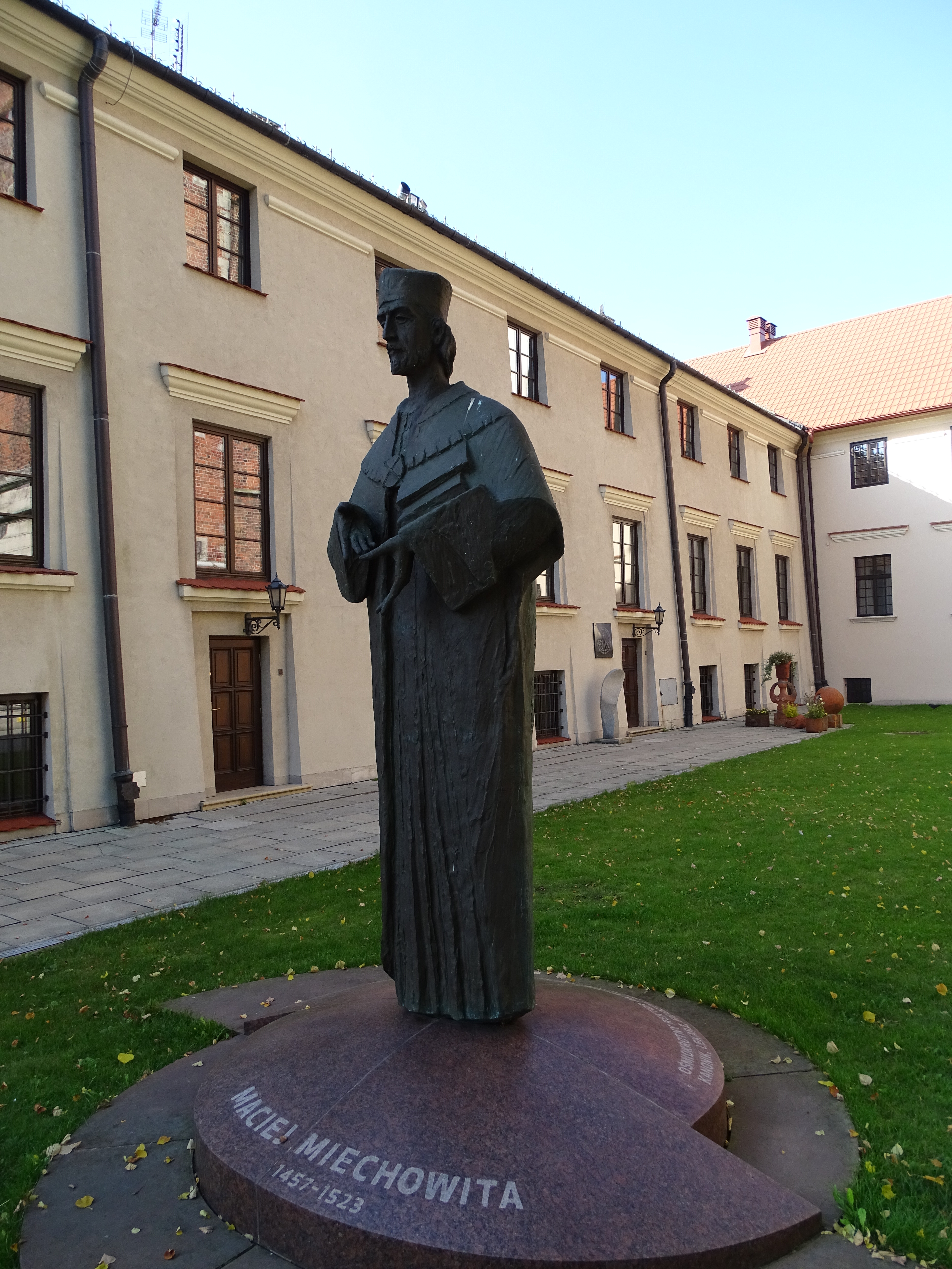 Pomnik Macieja Michowity przy bazylice kolegiackiej Grobu Bożego w Miechowie., [online] Warszawa: Narodowy Instytut Audiowizualny [dostęp 13.04.2026]. Dostępny w internecie: http://www.ipsb.nina.gov.pl/a/foto/pomnik-macieja-michowity-przy-bazylice-kolegiackiej-grobu-bozego-w-miechowie