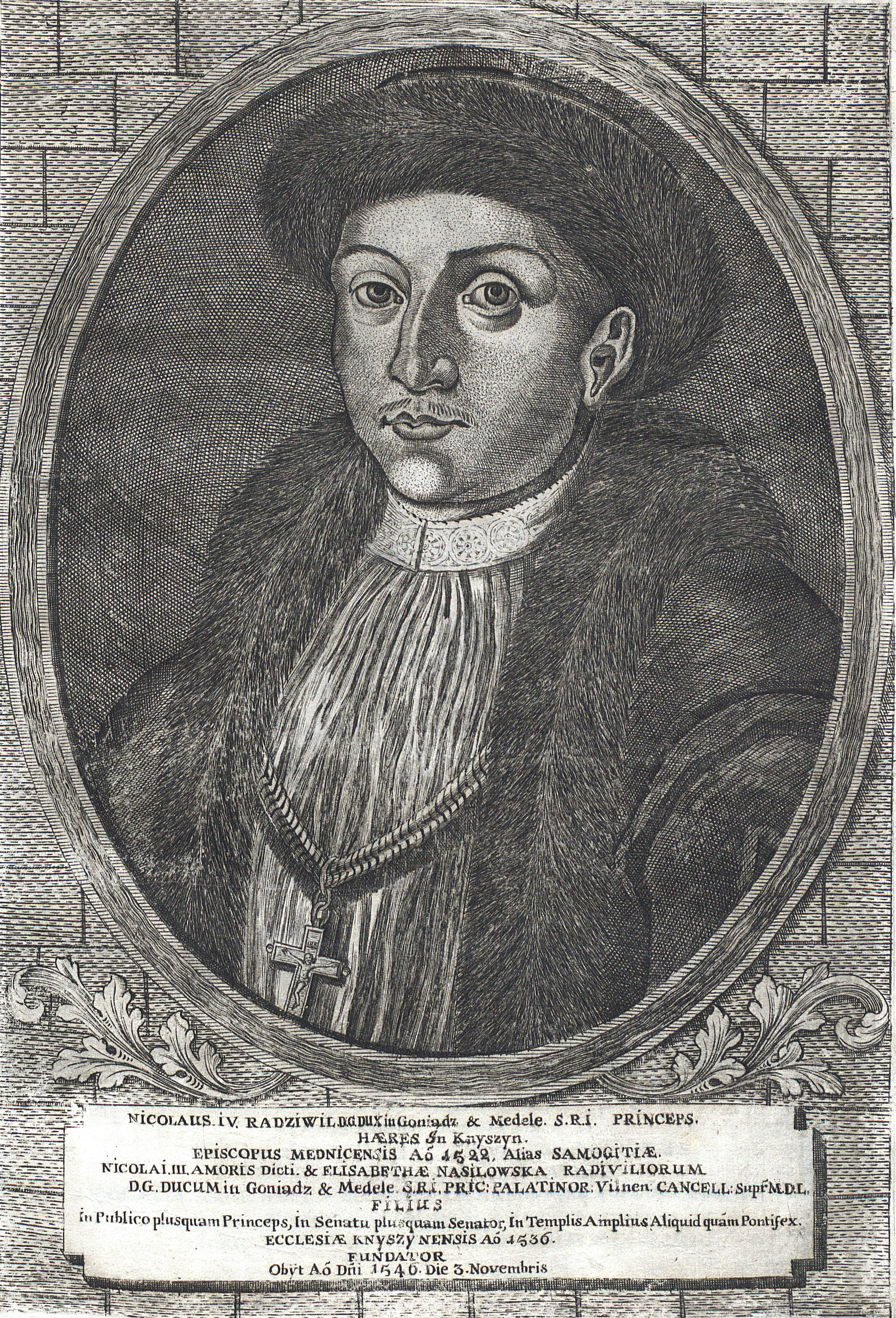 Miedzioryt Hirsza Leybowicza. Rycina opublikowana w dziele Marcina Franciszka Wobe "Icones familiae ducalis Radivilianae ex originalibus...,", wydanego w Nieświeżu w 1758 roku (tablica nr 17).