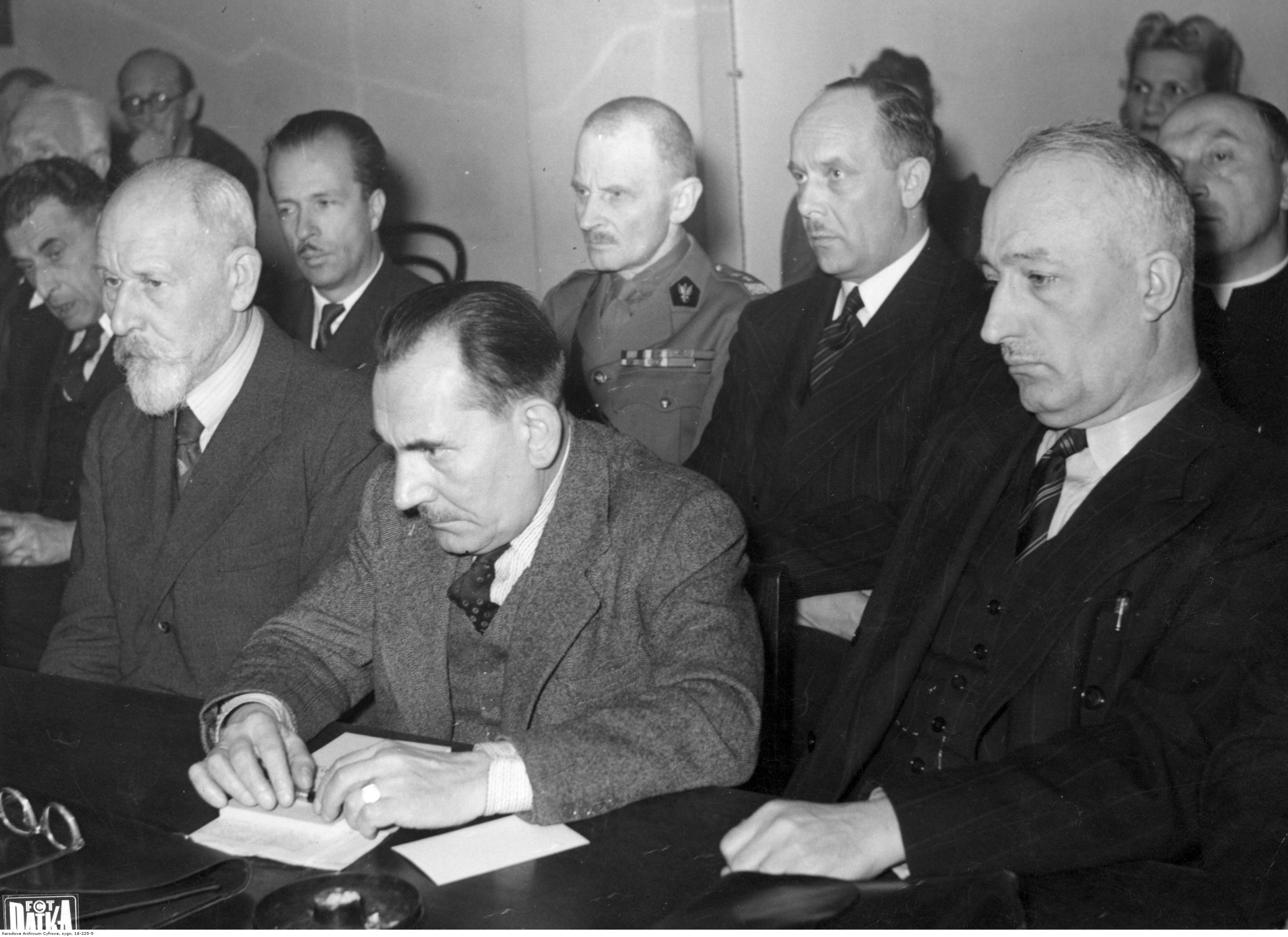 Posiedzenie Rady Narodowej dla oddania hołdu Warszawie, Londyn 6.10.1944 r. share Podziel się facebook google + twitter linkedin clipboard envelope print quote picture add × Cytowane źródła Cytowanie źródła on-line, czyli Internetowego Polskiego Słownika Biograficznego Posiedzenie Rady Narodowej dla oddania hołdu Warszawie, Londyn 6.10.1944 r., [online] Warszawa: Narodowy Instytut Audiowizualny [dostęp 13.04.2026]. Dostępny w internecie: http://www.ipsb.nina.gov.pl/a/foto/posiedzenie-rady-narodowej-dla-oddania-holdu-warszawie-londyn-6101944-r Cytowanie wydania drukowanego, czyli Polskiego Słownika Biograficznego , Posiedzenie Rady Narodowej dla oddania hołdu Warszawie, Londyn 6.10.1944 r., [w:] Polski słownik biograficzny, t. , IPSBID: ipsb-fo-82633 × Wyślij link do strony E-mail odbiorcy wiadomości: To pole jest wymaganeWpisz poprawny adres e-mail Twój adres e-mail: To pole jest wymaganeWpisz poprawny adres e-mail Podgląd wiadomości, która zostanie wysłana: Witaj, [Tutaj podany Twój e-mail] poleca Ci treść z iPSB (internetowym Polskim Słowniku Biograficznym) Posiedzenie Rady Narodowej dla oddania hołdu Warszawie, Londyn 6.10.1944 r. × Dodaj do kolekcji wybierz kolekcję, do której chcesz dodać ten artykuł: lub wpisz nazwę nowej kolekcji, do której chcesz dodać ten artykuł: : To pole jest wymagane Dodaj do kolekcji Wybierz kolekcję Swoje kolekcje znajdziesz w profilu. Wystarczy kliknąć ikonę zębatego koła w górnym prawym rogu. Możesz je zobaczyć tu: moje kolekcje. × Dodaj do kolekcji Element został dodany do Twojej kolekcji. Swoje kolekcje możesz zobaczyć tu: moje kolekcje. × Dodaj do kolekcji Aby dodawać materiały do kolekcji musisz się zalogować. OPIS POSTACI POWIąZANE W pierwszym rzędzie od lewej: Tomasz Arciszewski, minister Jan Stańczyk, minister Karol Popiel. W drugim rzędzie od prawej: ksiądz minister Zygmunt Kaczyński, minister Władysław Banaczyk, gen, Marian Kukiel. Fotografia Czesława Datki. Postaci powiązane Tomasz Stefan Arciszewski 1877-11-04 - 1955-11-20 polityk socjalistyczny Jan Stańczyk 1886-12-23 - 1953-08-07 działacz socjalistyczny więcej >> Zobacz zdjęcie w najwyższej jakości Źródło