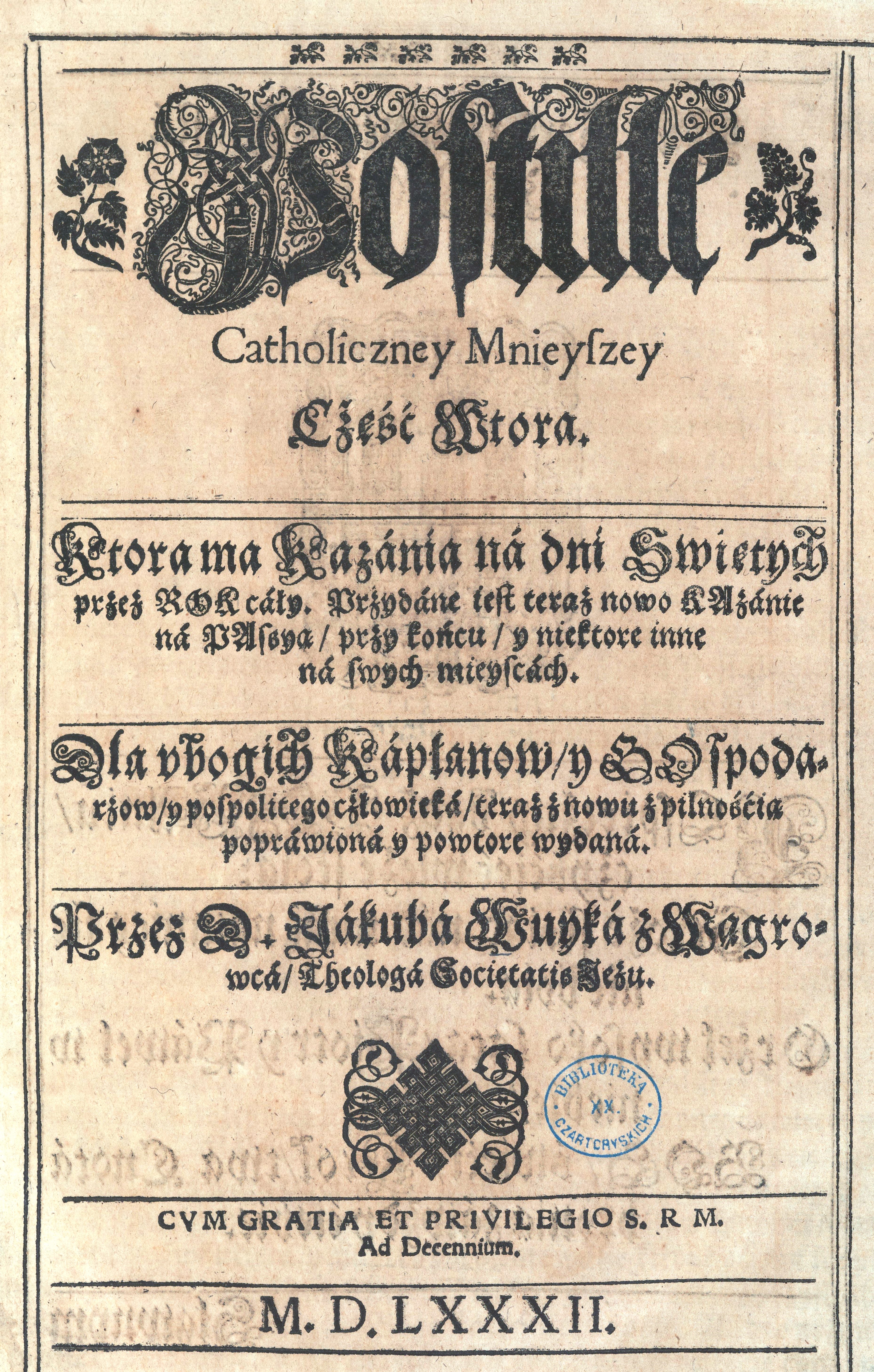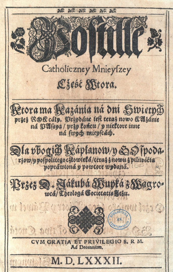 , "Postilla Catholiczna Mnieysza To iest Krotkie Kazania albo Wykłady świętych Ewangeliy na każdą Niedzielę y na Każde święto […] Na dwie części rozdzielone. [Cz. 2] , Postille catholiczney mnieyszey część wtora. Ktora ma kazania na dni Swiętych przez Rok c, [w:] Polski słownik biograficzny, t. ,