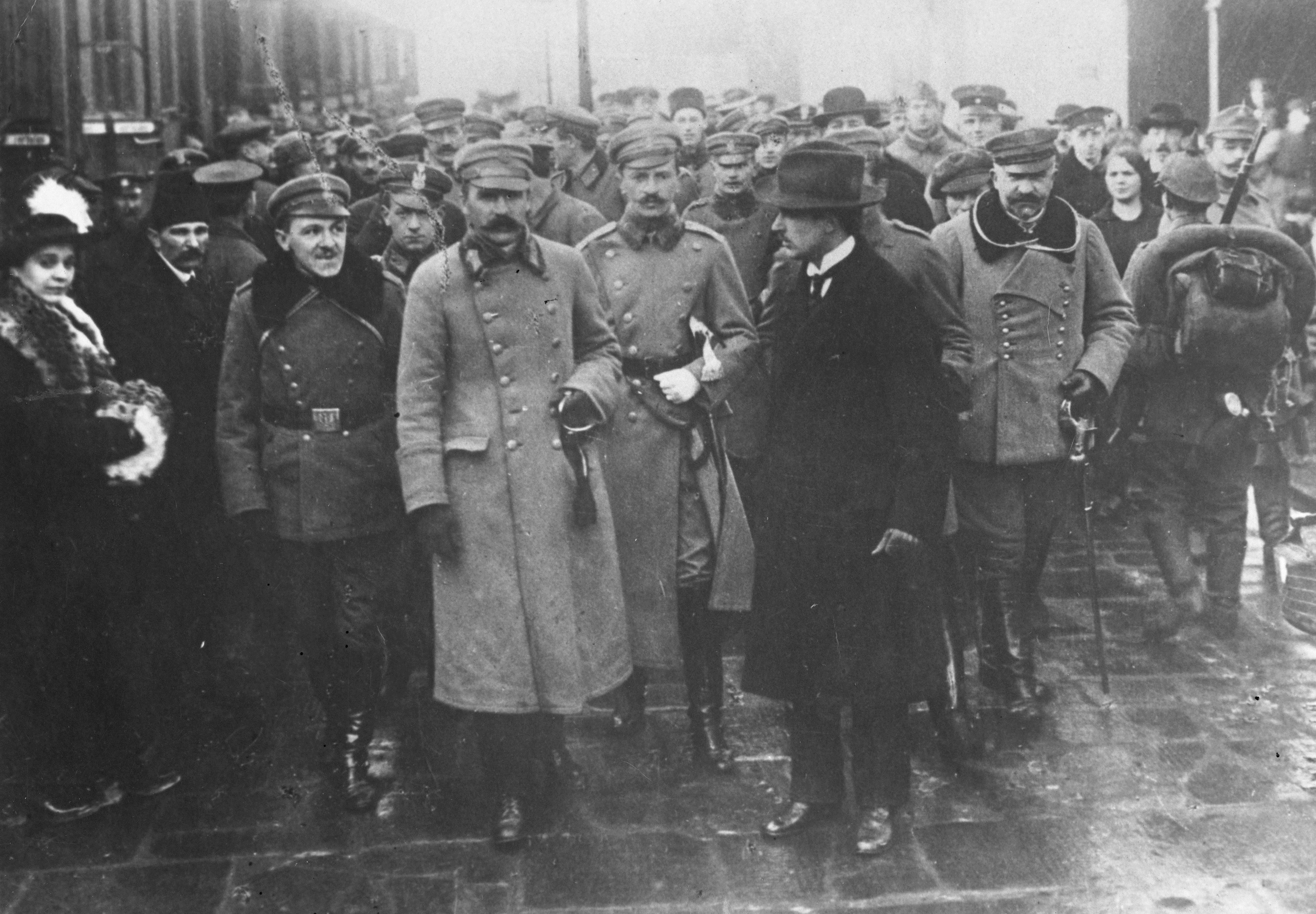 Powitanie Józefa Piłsudskiego na Dworcu Wiedeńskim w Warszawie po przybyciu z Krakowa 12.12.1916 r., [online] Warszawa: Narodowy Instytut Audiowizualny [dostęp 04.04.2026]. Dostępny w internecie: http://www.ipsb.nina.gov.pl/a/foto/powitanie-jozefa-pilsudskiego-na-dworcu-wiedenskim-w-warszawie-po-przybyciu-z-krakowa-12121916-r