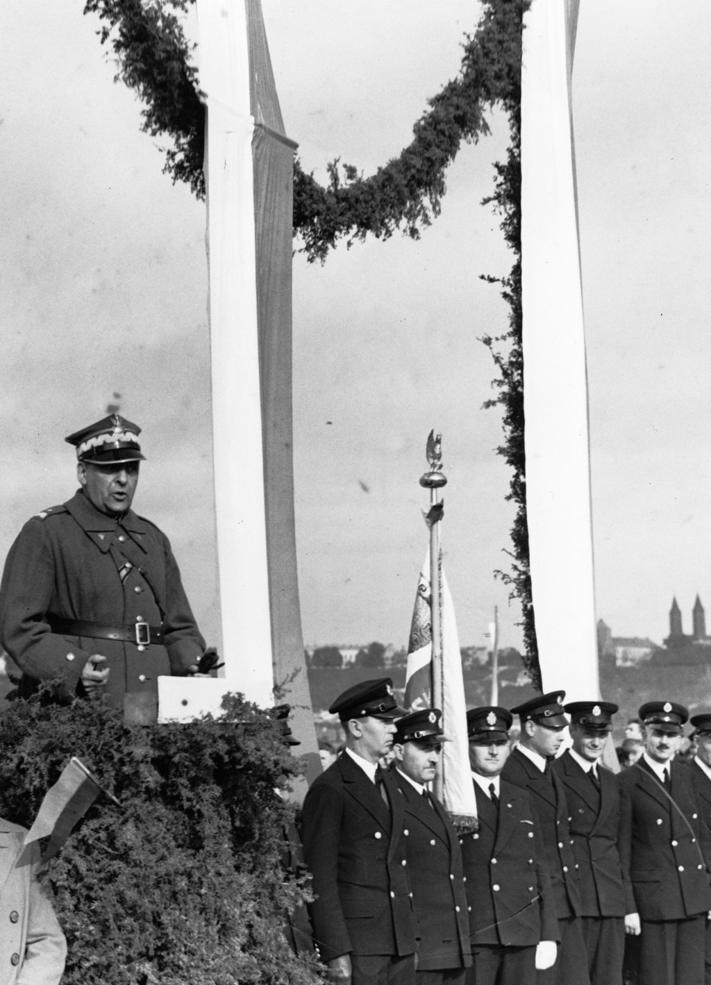 , Prezes Ligi Morskiej i Kolonialnej gen. Stanisław Kwaśniewski przemawia podczas uroczystości otwarcia portu handlowego na Wiśle w Płocku., [w:] Polski słownik biograficzny, t. ,