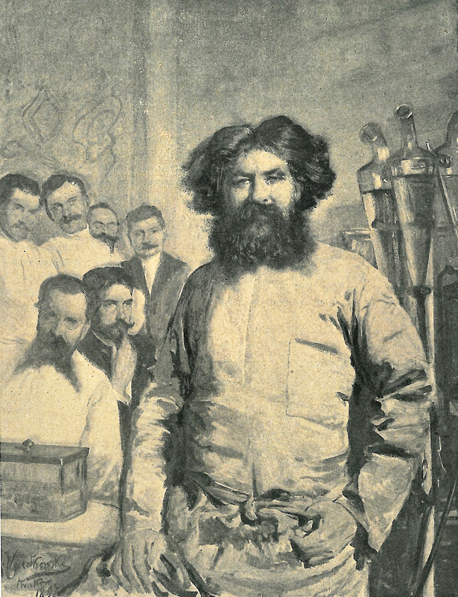 "Prof. Rydygier w otoczeniu asystentów". share Podziel się facebook google + twitter linkedin clipboard envelope print quote picture add × Cytowane źródła Cytowanie źródła on-line, czyli Internetowego Polskiego Słownika Biograficznego "Prof. Rydygier w otoczeniu asystentów"., [online] Warszawa: Narodowy Instytut Audiowizualny [dostęp 21.03.2026]. Dostępny w internecie: http://www.ipsb.nina.gov.pl/a/foto/prof-rydygier-w-otoczeniu-asystentow-mal-leon-wyczolkowski-tygodnik-ilustrowany-1899-nr-51-s-1003 Cytowanie wydania drukowanego, czyli Polskiego Słownika Biograficznego , "Prof. Rydygier w otoczeniu asystentów"., [w:] Polski słownik biograficzny, t. , IPSBID: ipsb-fo-74694 × Wyślij link do strony E-mail odbiorcy wiadomości: To pole jest wymaganeWpisz poprawny adres e-mail Twój adres e-mail: To pole jest wymaganeWpisz poprawny adres e-mail Podgląd wiadomości, która zostanie wysłana: Witaj, [Tutaj podany Twój e-mail] poleca Ci treść z iPSB (internetowym Polskim Słowniku Biograficznym) "Prof. Rydygier w otoczeniu asystentów". × Dodaj do kolekcji wybierz kolekcję, do której chcesz dodać ten artykuł: lub wpisz nazwę nowej kolekcji, do której chcesz dodać ten artykuł: : To pole jest wymagane Dodaj do kolekcji Wybierz kolekcję Swoje kolekcje znajdziesz w profilu. Wystarczy kliknąć ikonę zębatego koła w górnym prawym rogu. Możesz je zobaczyć tu: moje kolekcje. × Dodaj do kolekcji Element został dodany do Twojej kolekcji. Swoje kolekcje możesz zobaczyć tu: moje kolekcje. × Dodaj do kolekcji Aby dodawać materiały do kolekcji musisz się zalogować. OPIS POSTACI POWIąZANE Fotografia obrazu namalowanego przez Leona Wyczółkowskiego, opublikowana w 1899 roku w "Tygodniku Ilustrowanym" , nr 51, s. 1003. Postaci powiązane Ludwik Rydygier (pierwotnie Riediger) 1850-08-21 - 1920-06-25 chirurg więcej >> Zobacz zdjęcie w najwyższej jakości