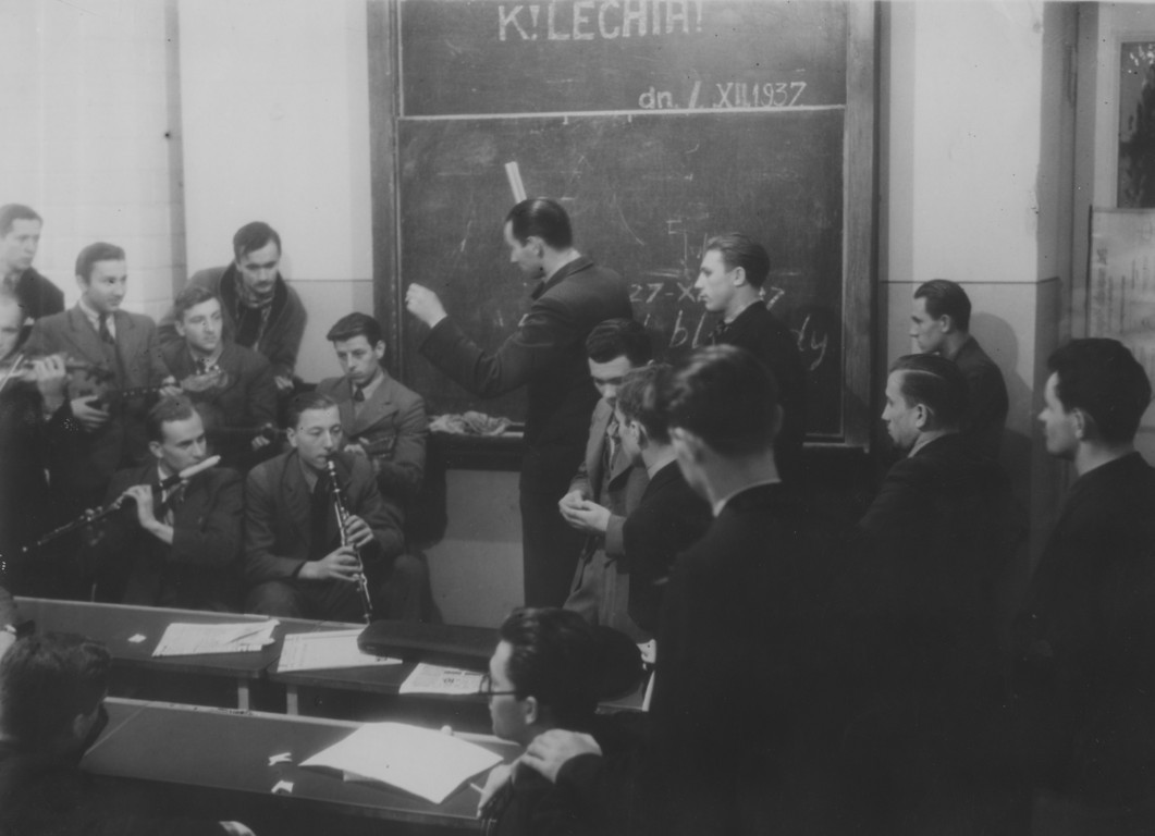 Protest studentów Wyższej Państwowej Szkoły Budowy Maszyn i Elektromechaniki im. H. Wawelberga i S. Rotwanda przy ul. Mokotowskiej 4/6 w Warszawie. (1937 r.), [online] Warszawa: Narodowy Instytut Audiowizualny [dostęp 02.04.2026]. Dostępny w internecie: http://www.ipsb.nina.gov.pl/a/foto/protest-studentow-wyzszej-panstwowej-szkoly-budowy-maszyn-i-elektromechaniki-im-h-wawelberga-i-s-rotwanda-przy-ul-mokotowskiej-46-w-warszawie-01
