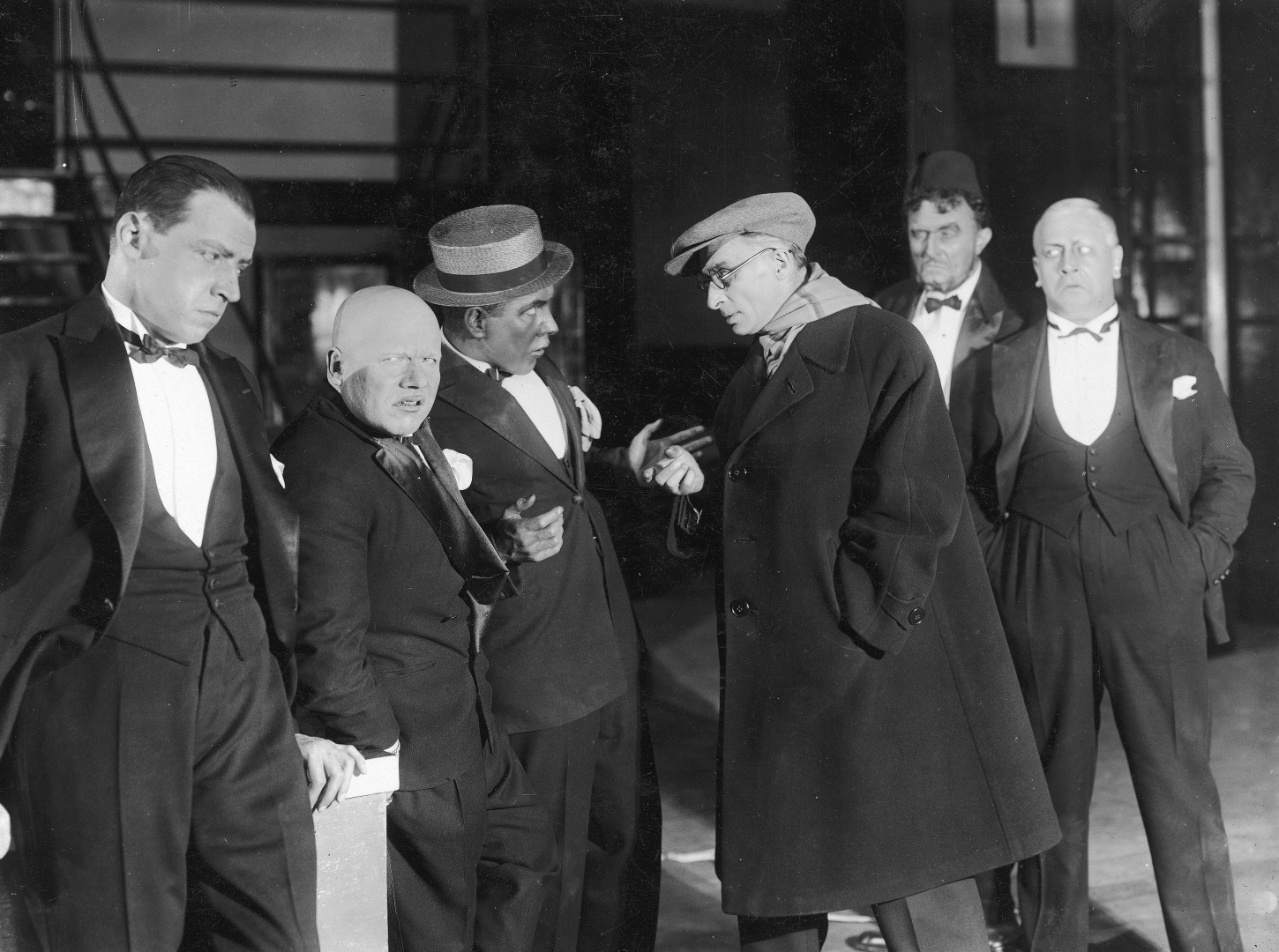 Widoczni od lewej: Janusz Staszewski jako Dolph, Henryk Małkowski jako Thomson, Tadeusz Białoszczyński jako Mike, Ludwik Fritsche jako agent policji kryminalnej Dan Maccorn, Julian Krzewiński jako właciciel kabaretu Nick Verdis, Bogusław Samborski jako Steff Crandal.