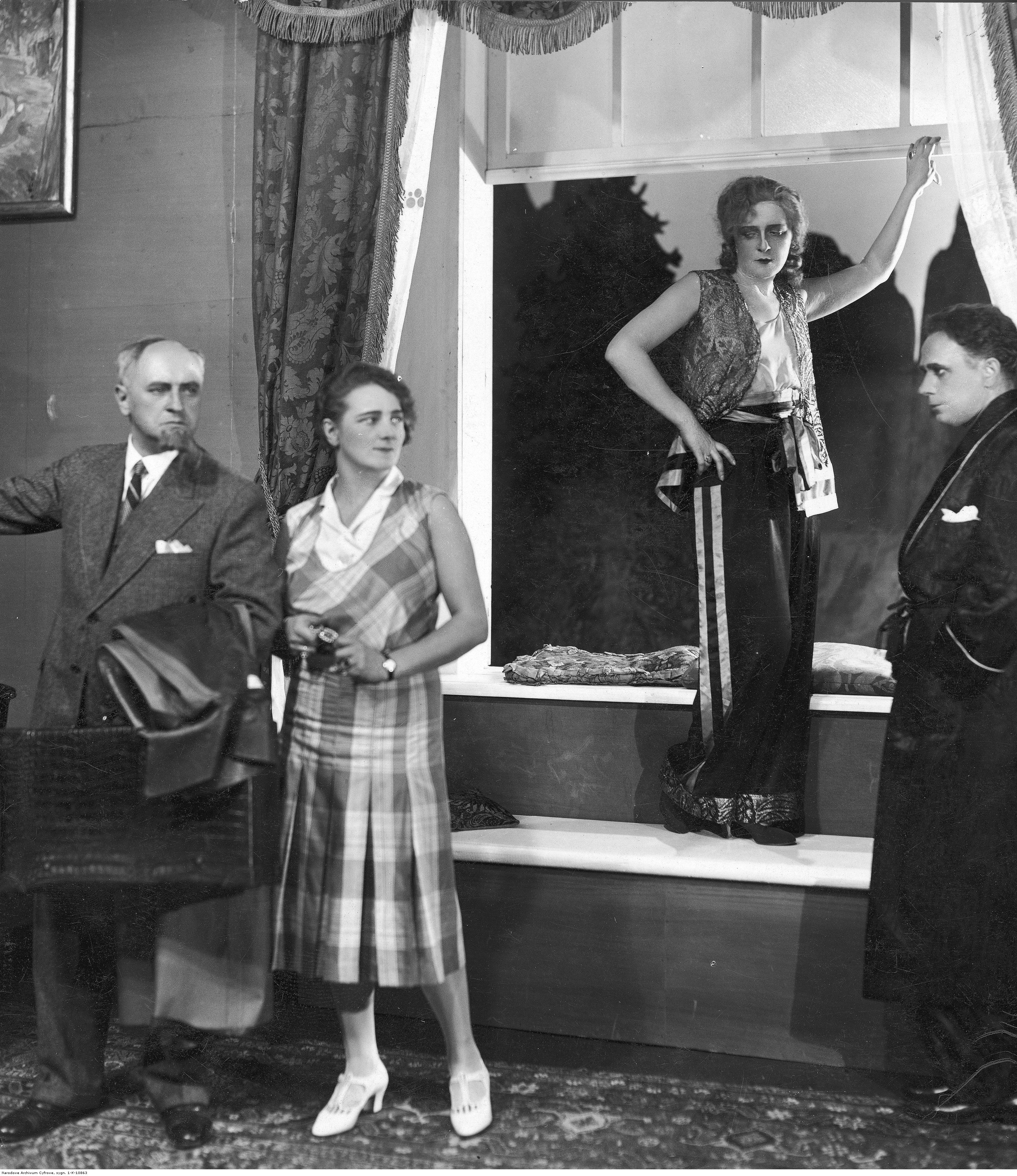 Przedstawienie „Egzotyczna kuzynka” Louisa Verneuila w Teatrze Letnim w Warszawie w 1930 roku. share Podziel się facebook google + twitter linkedin clipboard envelope print quote picture add × Cytowane źródła Cytowanie źródła on-line, czyli Internetowego Polskiego Słownika Biograficznego Przedstawienie „Egzotyczna kuzynka” Louisa Verneuila w Teatrze Letnim w Warszawie w 1930 roku., [online] Warszawa: Narodowy Instytut Audiowizualny [dostęp 13.04.2026]. Dostępny w internecie: http://www.ipsb.nina.gov.pl/a/foto/przedstawienie-egzotyczna-kuzynka-louisa-verneuila-w-teatrze-letnim-w-warszawie-w-1930-roku Cytowanie wydania drukowanego, czyli Polskiego Słownika Biograficznego , Przedstawienie „Egzotyczna kuzynka” Louisa Verneuila w Teatrze Letnim w Warszawie w 1930 roku., [w:] Polski słownik biograficzny, t. , IPSBID: ipsb-fo-83265 × Wyślij link do strony E-mail odbiorcy wiadomości: To pole jest wymaganeWpisz poprawny adres e-mail Twój adres e-mail: To pole jest wymaganeWpisz poprawny adres e-mail Podgląd wiadomości, która zostanie wysłana: Witaj, [Tutaj podany Twój e-mail] poleca Ci treść z iPSB (internetowym Polskim Słowniku Biograficznym) Przedstawienie „Egzotyczna kuzynka” Louisa Verneuila w Teatrze Letnim w Warszawie w 1930 roku. × Dodaj do kolekcji wybierz kolekcję, do której chcesz dodać ten artykuł: lub wpisz nazwę nowej kolekcji, do której chcesz dodać ten artykuł: : To pole jest wymagane Dodaj do kolekcji Wybierz kolekcję Swoje kolekcje znajdziesz w profilu. Wystarczy kliknąć ikonę zębatego koła w górnym prawym rogu. Możesz je zobaczyć tu: moje kolekcje. × Dodaj do kolekcji Element został dodany do Twojej kolekcji. Swoje kolekcje możesz zobaczyć tu: moje kolekcje. × Dodaj do kolekcji Aby dodawać materiały do kolekcji musisz się zalogować. OPIS POSTACI POWIąZANE Fragment przedstawienia. Od lewej: Józef Orwid, Jadwiga Gzylewska, Maria Gella, Władysław Lenczewski. Fotografia Jana Malarskiego. Postaci powiązane Józef Orwid (właśc. Kotschy) 1891-09-14 - 1944-08-13 aktor teatralny więcej >> Zobacz zdjęcie w najwyższej jakości Źródło