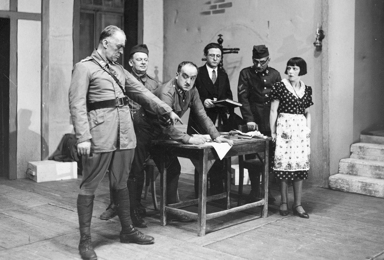 Przedstawienie „Rywale” Maxwella Andersona i Laurence'a Stallingsa w Teatrze Miejskim im. Juliusza Słowackiego w Krakowie w 1929 roku (3) share Podziel się facebook google + twitter linkedin clipboard envelope print quote picture add × Cytowane źródła Cytowanie źródła on-line, czyli Internetowego Polskiego Słownika Biograficznego Przedstawienie „Rywale” Maxwella Andersona i Laurence'a Stallingsa w Teatrze Miejskim im. Juliusza Słowackiego w Krakowie w 1929 roku (3), [online] Warszawa: Narodowy Instytut Audiowizualny [dostęp 28.02.2026]. Dostępny w internecie: http://www.ipsb.nina.gov.pl/a/foto/przedstawienie-rywale-maxwella-andersona-i-laurencea-stallingsa-w-teatrze-miejskim-im-juliusza-slowackiego-w-krakowie-w-1929-roku-3 Cytowanie wydania drukowanego, czyli Polskiego Słownika Biograficznego , Przedstawienie „Rywale” Maxwella Andersona i Laurence'a Stallingsa w Teatrze Miejskim im. Juliusza Słowackiego w Krakowie w 1929 roku (3), [w:] Polski słownik biograficzny, t. , IPSBID: ipsb-fo-75278 × Wyślij link do strony E-mail odbiorcy wiadomości: To pole jest wymaganeWpisz poprawny adres e-mail Twój adres e-mail: To pole jest wymaganeWpisz poprawny adres e-mail Podgląd wiadomości, która zostanie wysłana: Witaj, [Tutaj podany Twój e-mail] poleca Ci treść z iPSB (internetowym Polskim Słowniku Biograficznym) Przedstawienie „Rywale” Maxwella Andersona i Laurence'a Stallingsa w Teatrze Miejskim im. Juliusza Słowackiego w Krakowie w 1929 roku (3) × Dodaj do kolekcji wybierz kolekcję, do której chcesz dodać ten artykuł: lub wpisz nazwę nowej kolekcji, do której chcesz dodać ten artykuł: : To pole jest wymagane Dodaj do kolekcji Wybierz kolekcję Swoje kolekcje znajdziesz w profilu. Wystarczy kliknąć ikonę zębatego koła w górnym prawym rogu. Możesz je zobaczyć tu: moje kolekcje. × Dodaj do kolekcji Element został dodany do Twojej kolekcji. Swoje kolekcje możesz zobaczyć tu: moje kolekcje. × Dodaj do kolekcji Aby dodawać materiały do kolekcji musisz się zalogować. OPIS POSTACI POWIąZANE Scena z aktu II. Od lewej: Kazimierz Junosza-Stępowski jako kapitan Flagg, Józef Leliwa jako Lipner, Kazimierz Fabisiak jako sierżant Quirt, Wilhelm Wichurski jako Burmistrz, Stefan Turski jako Ferguson, Stanisława Kostecka jako Germaine'a. Postaci powiązane Kazimierz (Józef Damian Kazimierz) Stępowski (Junosza-Stępowski) 1880-11-26 - 1943-07-05 aktor filmowy więcej >> Zobacz zdjęcie w najwyższej jakości Źródło