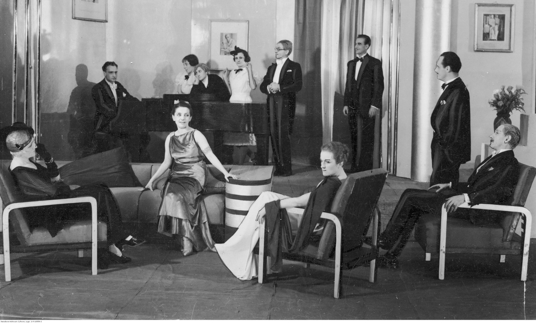 Przedstawienie "Tessa" w Teatrze Polskim w Poznaniu w 1936 roku. share Podziel się facebook google + twitter linkedin clipboard envelope print quote picture add × Cytowane źródła Cytowanie źródła on-line, czyli Internetowego Polskiego Słownika Biograficznego Przedstawienie "Tessa" w Teatrze Polskim w Poznaniu w 1936 roku., [online] Warszawa: Narodowy Instytut Audiowizualny [dostęp 14.04.2026]. Dostępny w internecie: http://www.ipsb.nina.gov.pl/a/foto/przedstawienie-tessa-w-teatrze-polskim-w-poznaniu-w-1936-roku Cytowanie wydania drukowanego, czyli Polskiego Słownika Biograficznego , Przedstawienie "Tessa" w Teatrze Polskim w Poznaniu w 1936 roku., [w:] Polski słownik biograficzny, t. , IPSBID: ipsb-fo-83192 × Wyślij link do strony E-mail odbiorcy wiadomości: To pole jest wymaganeWpisz poprawny adres e-mail Twój adres e-mail: To pole jest wymaganeWpisz poprawny adres e-mail Podgląd wiadomości, która zostanie wysłana: Witaj, [Tutaj podany Twój e-mail] poleca Ci treść z iPSB (internetowym Polskim Słowniku Biograficznym) Przedstawienie "Tessa" w Teatrze Polskim w Poznaniu w 1936 roku. × Dodaj do kolekcji wybierz kolekcję, do której chcesz dodać ten artykuł: lub wpisz nazwę nowej kolekcji, do której chcesz dodać ten artykuł: : To pole jest wymagane Dodaj do kolekcji Wybierz kolekcję Swoje kolekcje znajdziesz w profilu. Wystarczy kliknąć ikonę zębatego koła w górnym prawym rogu. Możesz je zobaczyć tu: moje kolekcje. × Dodaj do kolekcji Element został dodany do Twojej kolekcji. Swoje kolekcje możesz zobaczyć tu: moje kolekcje. × Dodaj do kolekcji Aby dodawać materiały do kolekcji musisz się zalogować. OPIS POSTACI POWIąZANE Scena zbiorowa. Widoczni m.in. Elżbieta Łabuńska jako Flora Churchil, Michał Pluciński jako Lewis Dodd, Barbara Ludwiżanka, Stanisław Jaworski. Postaci powiązane Barbara Ludwiżanka 1908-01-24 - 1990-10-26 aktorka teatralna więcej >> Zobacz zdjęcie w najwyższej jakości Źródło
