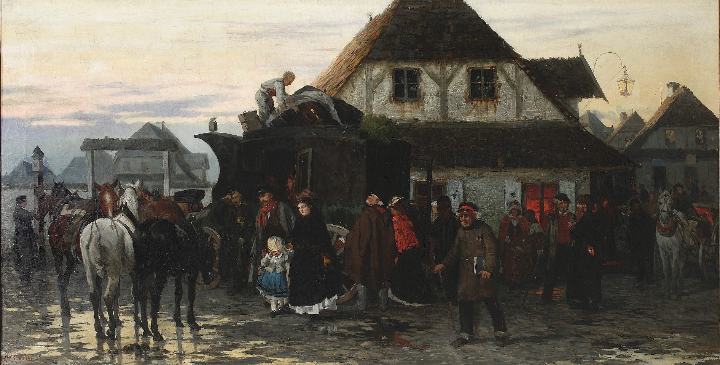 "Przyjazd karetki pocztowej do miasteczka" Alfreda Kowalskiego Wierusza., [online] Warszawa: Narodowy Instytut Audiowizualny [dostęp 13.04.2026]. Dostępny w internecie: http://www.ipsb.nina.gov.pl/a/foto/przyjazd-karetki-pocztowej-do-miasteczka-alfreda-kowalskiego-wierusza