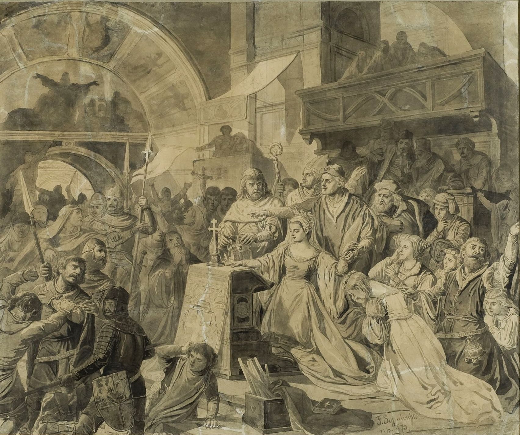 "Przysięga królowej Zofii Holszańskiej" Feliksa Sypniewskiego., [online] Warszawa: Narodowy Instytut Audiowizualny [dostęp 27.02.2026]. Dostępny w internecie: http://www.ipsb.nina.gov.pl/a/foto/przysiega-krolowej-zofii-holszanskiej-feliksa-sypniewskiego
