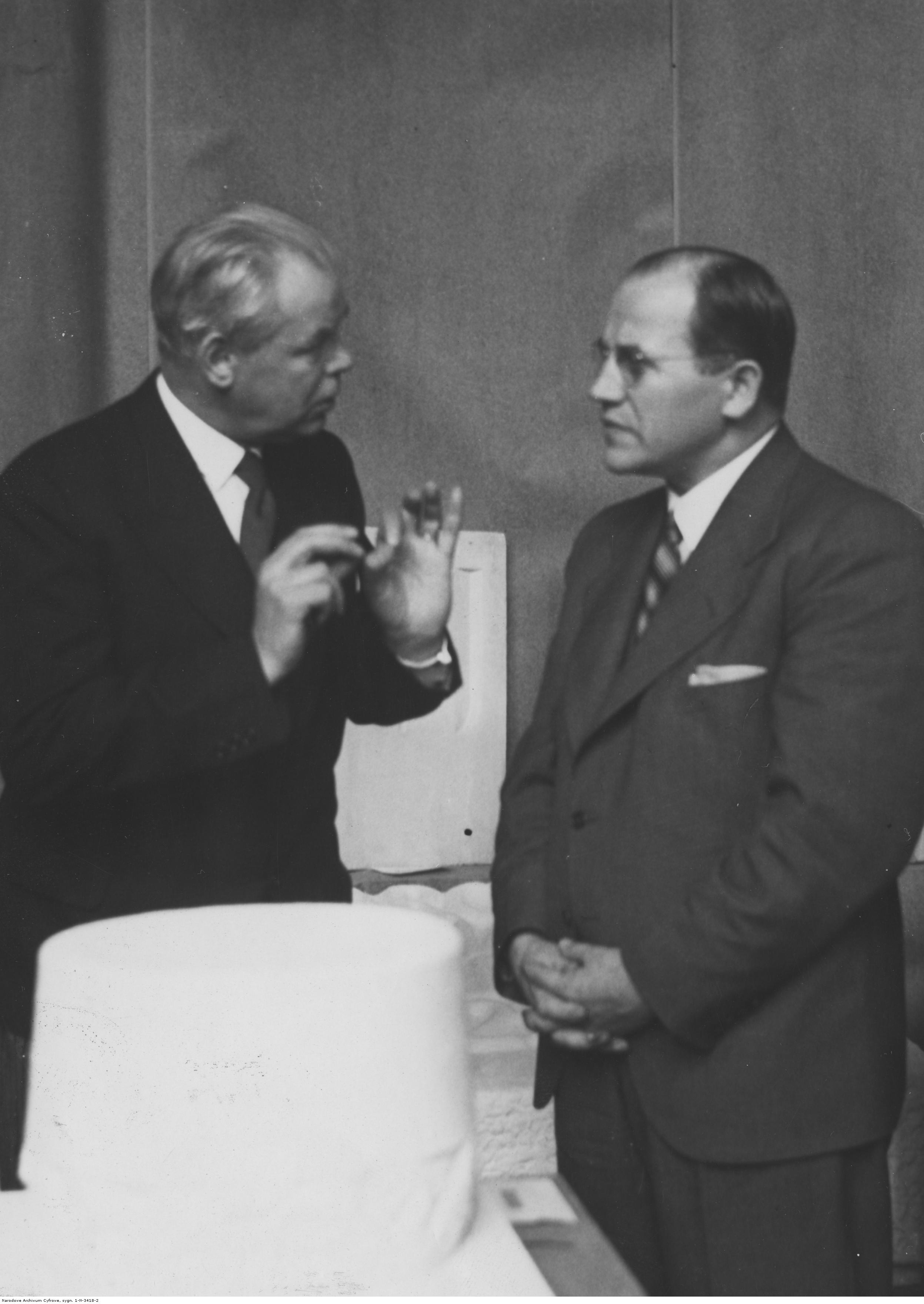 , Rektor Akademii Sztuk Pięknych w Warszawie profesor Wojciech Jastrzębowski (z lewej) podczas rozmowy z posłem nadzwyczajnym i ministrem pełnomocnym Litwy w Polsce Kazysem Stirpą (z prawej), Warszawa 4.06.1938 r., [w:] Polski słownik biograficzny, t. ,