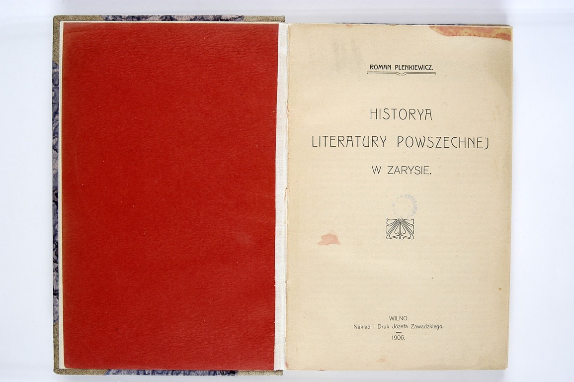 Roman Plenkiewicz "Historya literatury powszechnej w zarysie" (strona tytułowa), [online] Warszawa: Narodowy Instytut Audiowizualny [dostęp 01.04.2026]. Dostępny w internecie: http://www.ipsb.nina.gov.pl/a/foto/roman-plenkiewicz-historya-literatury-powszechnej-w-zarysie-strona-tytulowa