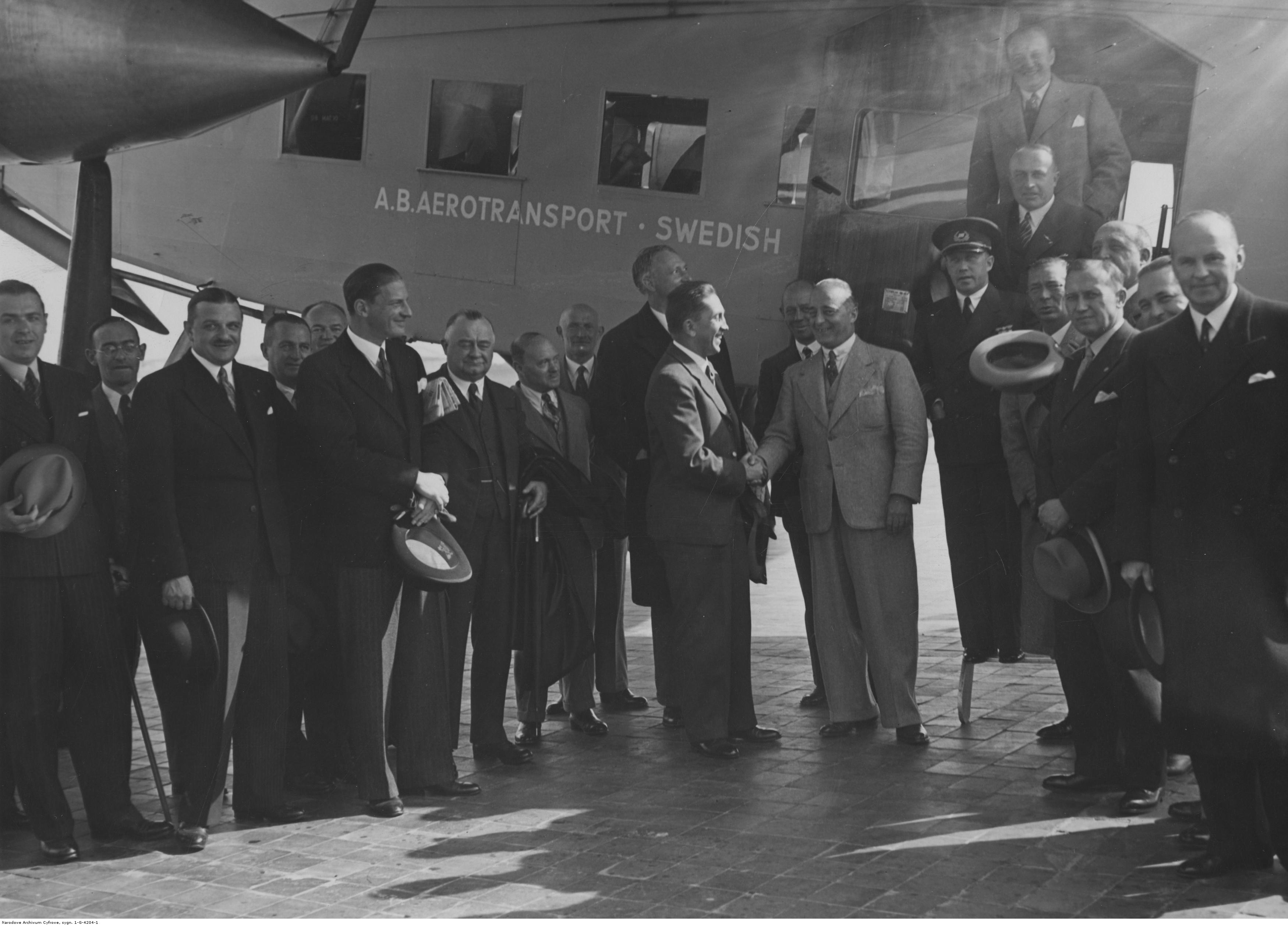 Rozmowy polsko-szwedzkie w sprawie komunikacji lotniczej Gdynia-Malmo 17.09.1935 r., [online] Warszawa: Narodowy Instytut Audiowizualny [dostęp 13.04.2026]. Dostępny w internecie: http://www.ipsb.nina.gov.pl/a/foto/rozmowy-polsko-szwedzkie-w-sprawie-komunikacji-lotniczej-gdynia-malmo-17091935-r-1