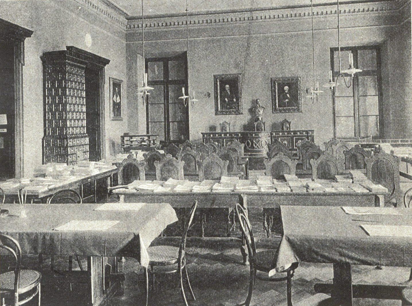 "Sala główna posiedzeń Akademii Umiejętności w Krakowie.", [online] Warszawa: Narodowy Instytut Audiowizualny [dostęp 13.04.2026]. Dostępny w internecie: http://www.ipsb.nina.gov.pl/a/foto/sala-glowna-posiedzen-akademii-umiejetnosci-w-krakowie