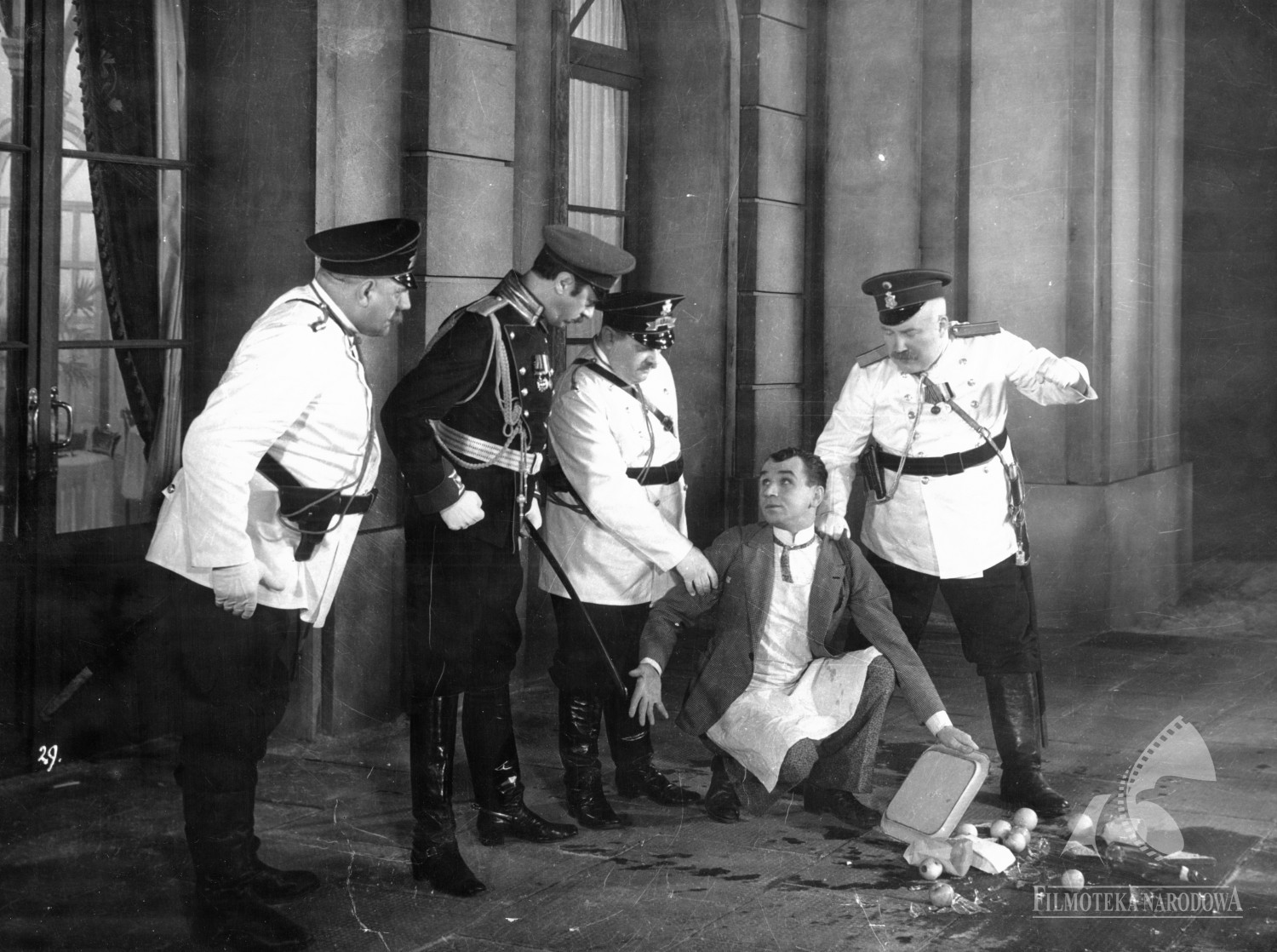 Scena z filmu Michała Waszyńskiego "Antek policmajster" z 1935 roku., [online] Warszawa: Narodowy Instytut Audiowizualny [dostęp 13.04.2026]. Dostępny w internecie: http://www.ipsb.nina.gov.pl/a/foto/scena-z-filmu-michala-waszynskiego-antek-policmajster-z-1935-roku
