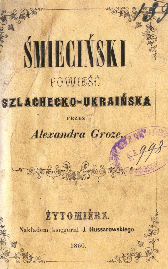 "Śmieciński : powieść szlachecko-ukraińska" Aleksandra Grozy., [online] Warszawa: Narodowy Instytut Audiowizualny [dostęp 13.04.2026]. Dostępny w internecie: http://www.ipsb.nina.gov.pl/a/foto/smiecinski-powiesc-szlachecko-ukrainska-aleksandra-grozy