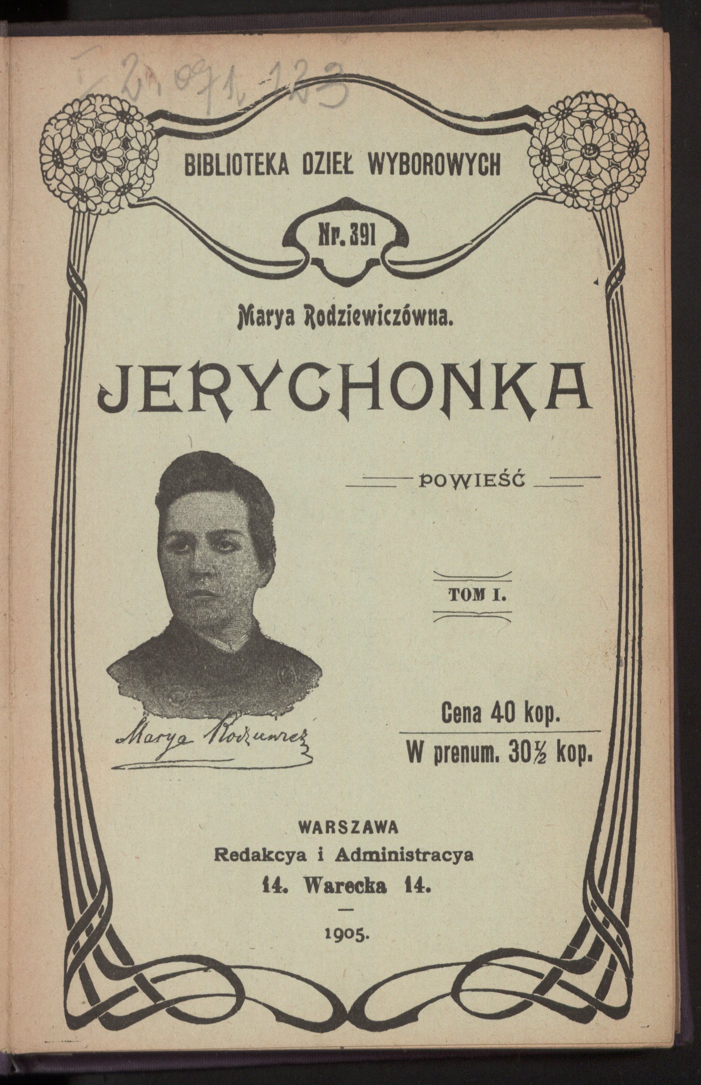 , Strona tytułowa powieści Marii Rodziewiczówny "Jerychonka"., [w:] Polski słownik biograficzny, t. ,