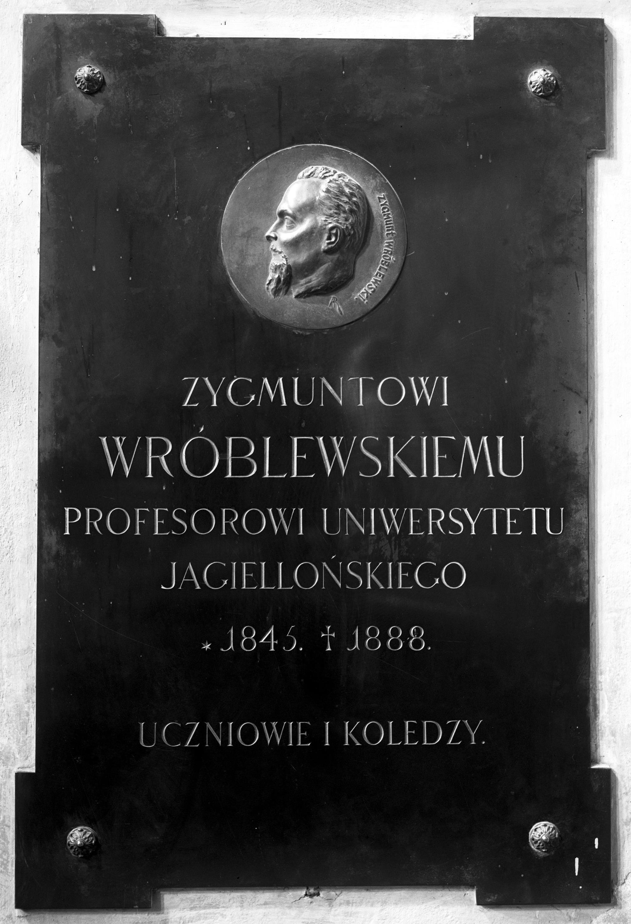 Tablica poświęcona profesorowi Uniwersytetu Jagiellońskiego Zygmuntowi Wróblewskiemu w kościele św. Anny w Krakowie., [online] Warszawa: Narodowy Instytut Audiowizualny [dostęp 28.02.2026]. Dostępny w internecie: http://www.ipsb.nina.gov.pl/a/foto/tablica-poswiecona-profesorowi-uniwersytetu-jagiellonskiego-zygmuntowi-wroblewskiemu-w-kosciele-sw-anny-w-krakowie