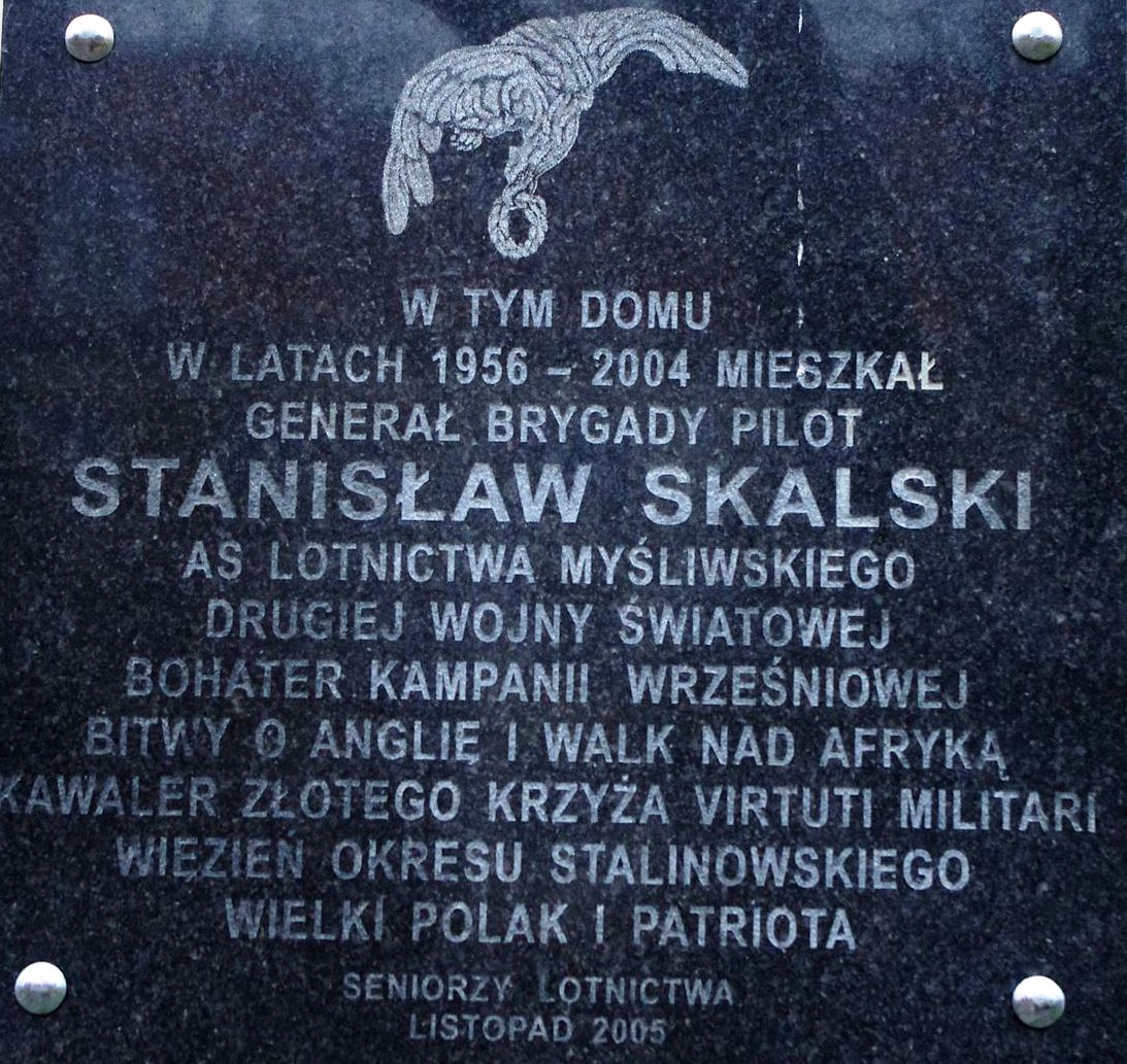 Tablica upamiętniająca Stanisława Skalskiego na budynku przy al. Wyzwolenia 10 w Warszawie, w którym mieszkał po II wojnie światowej., [online] Warszawa: Narodowy Instytut Audiowizualny [dostęp 02.04.2026]. Dostępny w internecie: http://www.ipsb.nina.gov.pl/a/foto/tablica-upamietniajaca-stanislawa-skalskiego-na-budynku-przy-al-wyzwolenia-10-w-warszawie-w-ktorym-mieszkal-po-ii-wojnie-swiatowej