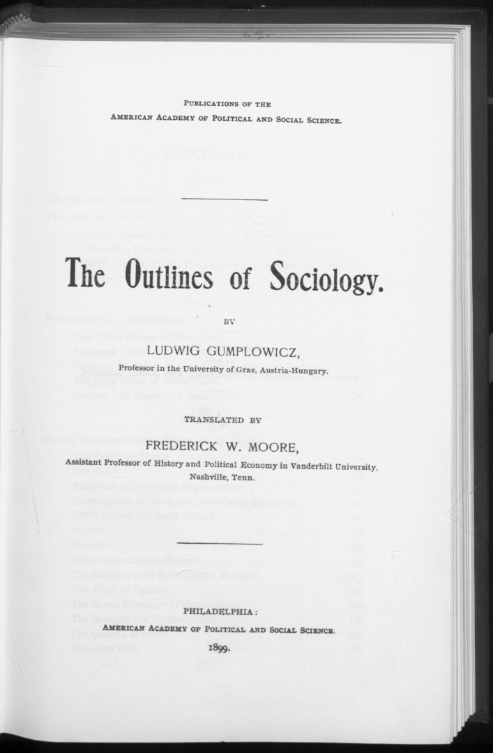 "The outlines of sociology" Ludwika Gumplowicza., [online] Warszawa: Narodowy Instytut Audiowizualny [dostęp 04.04.2026]. Dostępny w internecie: http://www.ipsb.nina.gov.pl/a/foto/the-outlines-of-sociology-ludwika-gumplowicza