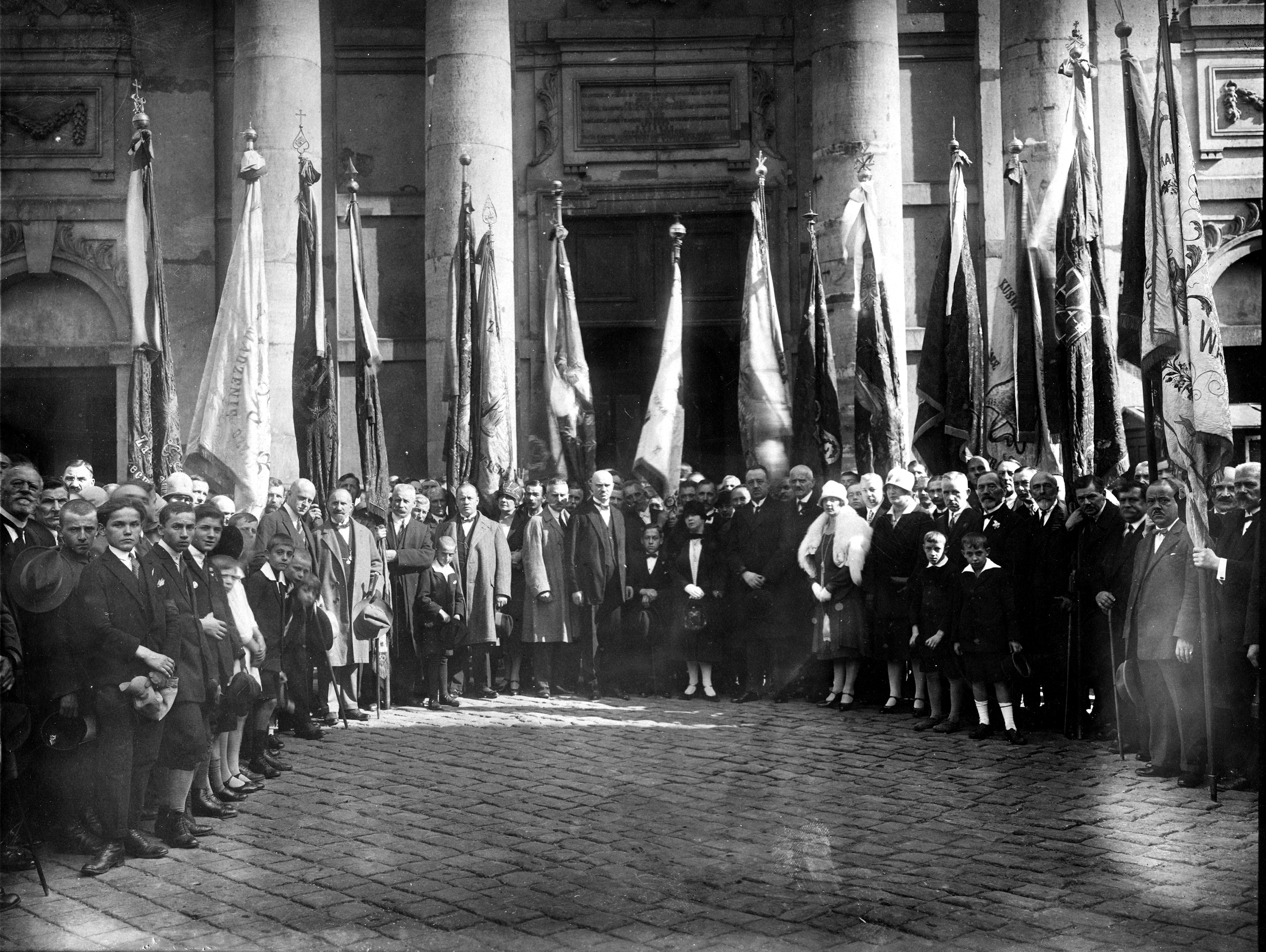 Uroczystość poświęcenia chorągwi Zgromadzenia Podmistrzów Zegarmistrzowskich, Warszawa październik 1927 roku., [online] Warszawa: Narodowy Instytut Audiowizualny [dostęp 28.02.2026]. Dostępny w internecie: http://www.ipsb.nina.gov.pl/a/foto/uroczystosc-poswiecenia-choragwi-zgromadzenia-podmistrzow-zegarmistrzowskich-warszawa-pazdziernik-1927-roku