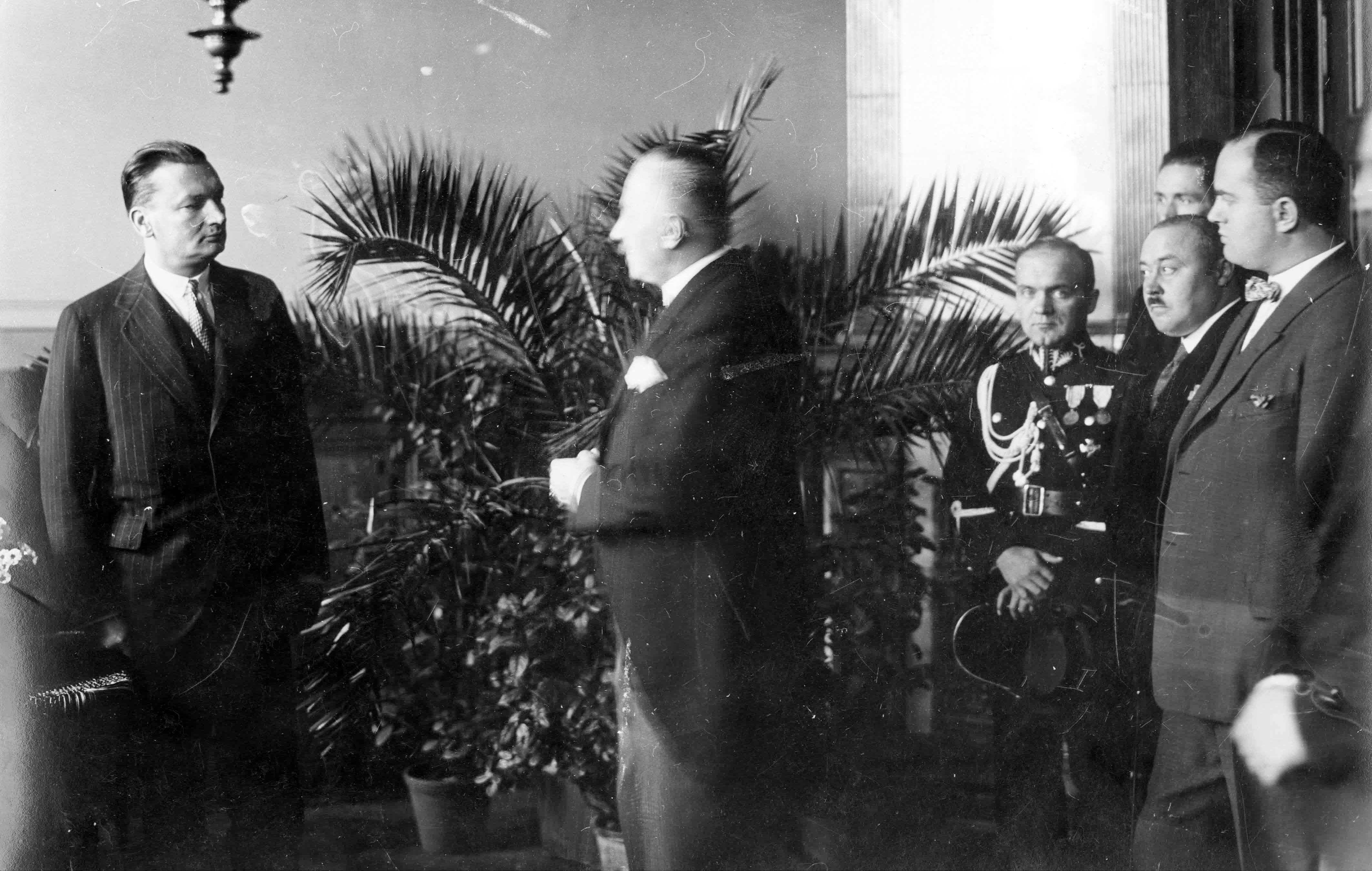 , Uroczystość powitania nowo mianowanego wojewody poznańskiego hrabiego Rogera Raczyńskiego przez urzędników województwa poznańskiego w gmachu Urzędu Wojewódzkiego w Poznaniu 14.10.1929 roku., [w:] Polski słownik biograficzny, t. ,