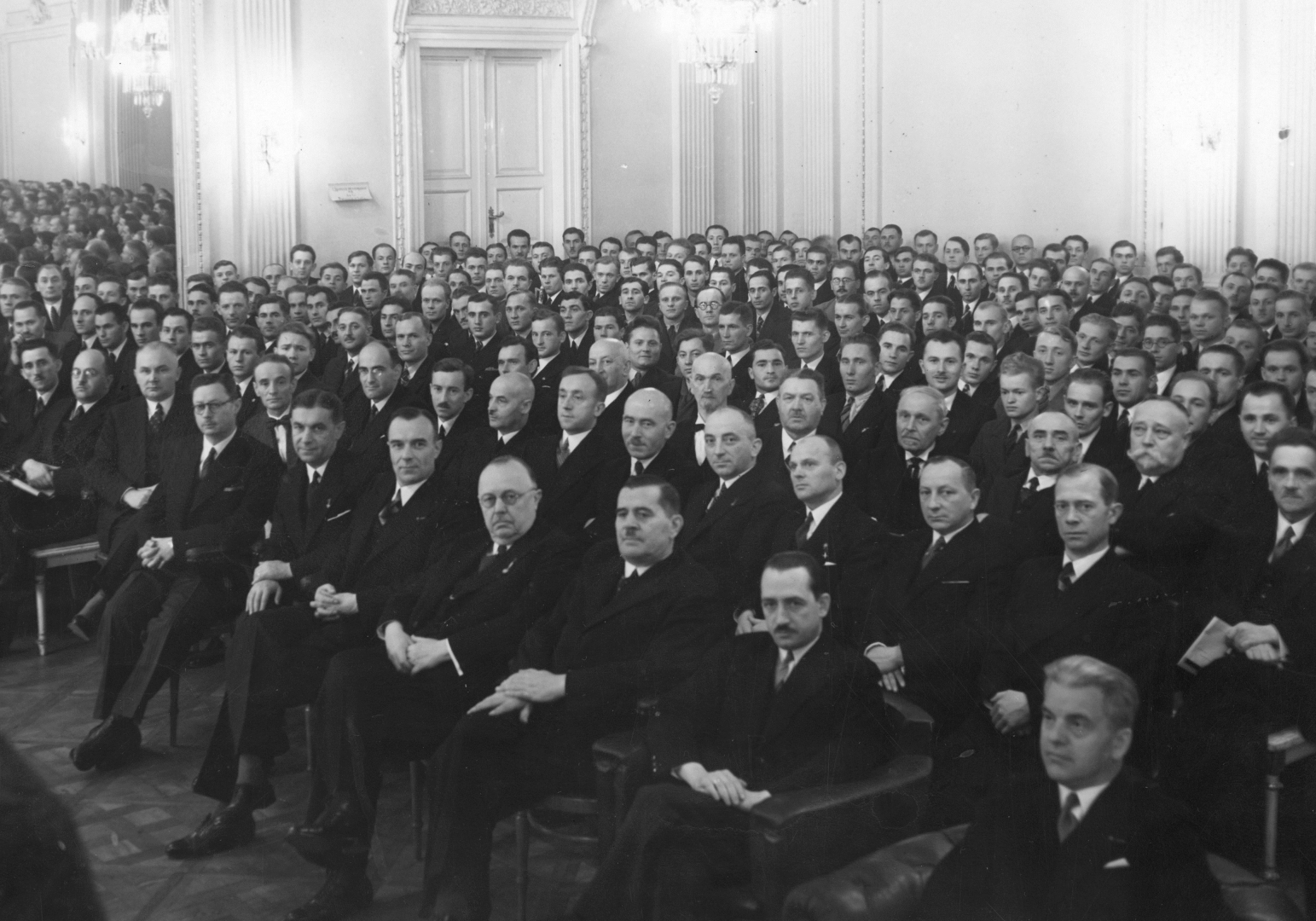 Uroczystość powitania nowo wstępujących do służby kolejowej i pożegnania odchodzących na emeryturę pracowników w sali Resursy Obywatelskiej w Warszawie 24.10.1936 r., [online] Warszawa: Narodowy Instytut Audiowizualny [dostęp 13.04.2026]. Dostępny w internecie: http://www.ipsb.nina.gov.pl/a/foto/uroczystosc-powitania-nowo-wstepujacych-do-sluzby-kolejowej-i-pozegnania-odchodzacych-na-emeryture-pracownikow-w-sali-resursy-obywatelskiej-w-warszawie-24101936-r