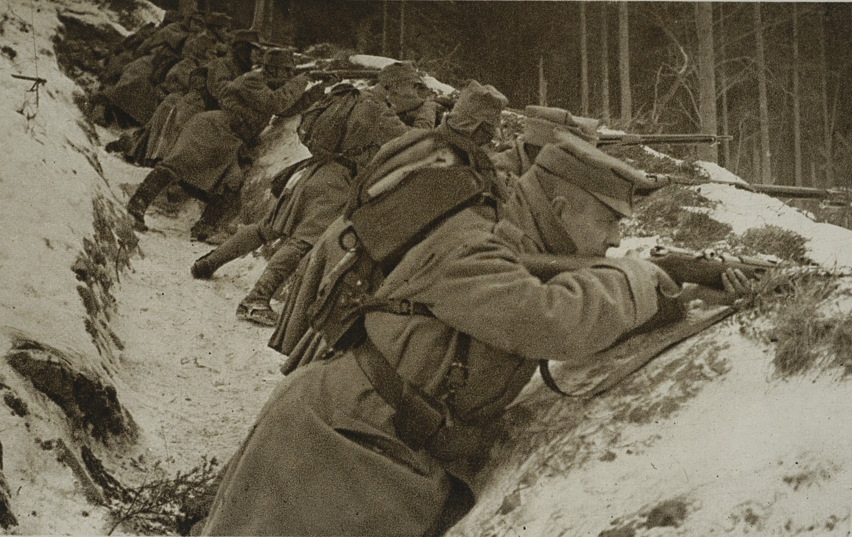 "W rowie strzeleckim" (żołnierze II Brygady Legionów Polskich w Gorganach na Ukrainie)., [online] Warszawa: Narodowy Instytut Audiowizualny [dostęp 28.02.2026]. Dostępny w internecie: http://www.ipsb.nina.gov.pl/a/foto/w-rowie-strzeleckim-zolnierze-ii-brygady-legionow-polskich-w-gorganach-na-ukrainie