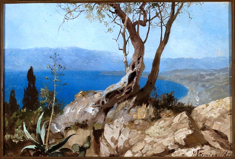 "Widok na jezioro ze skalistym brzegiem" Henryka Siemiradzkiego., [online] Warszawa: Narodowy Instytut Audiowizualny [dostęp 13.04.2026]. Dostępny w internecie: http://www.ipsb.nina.gov.pl/a/foto/widok-na-jezioro-ze-skalistym-brzegiem-henryka-siemiradzkiego