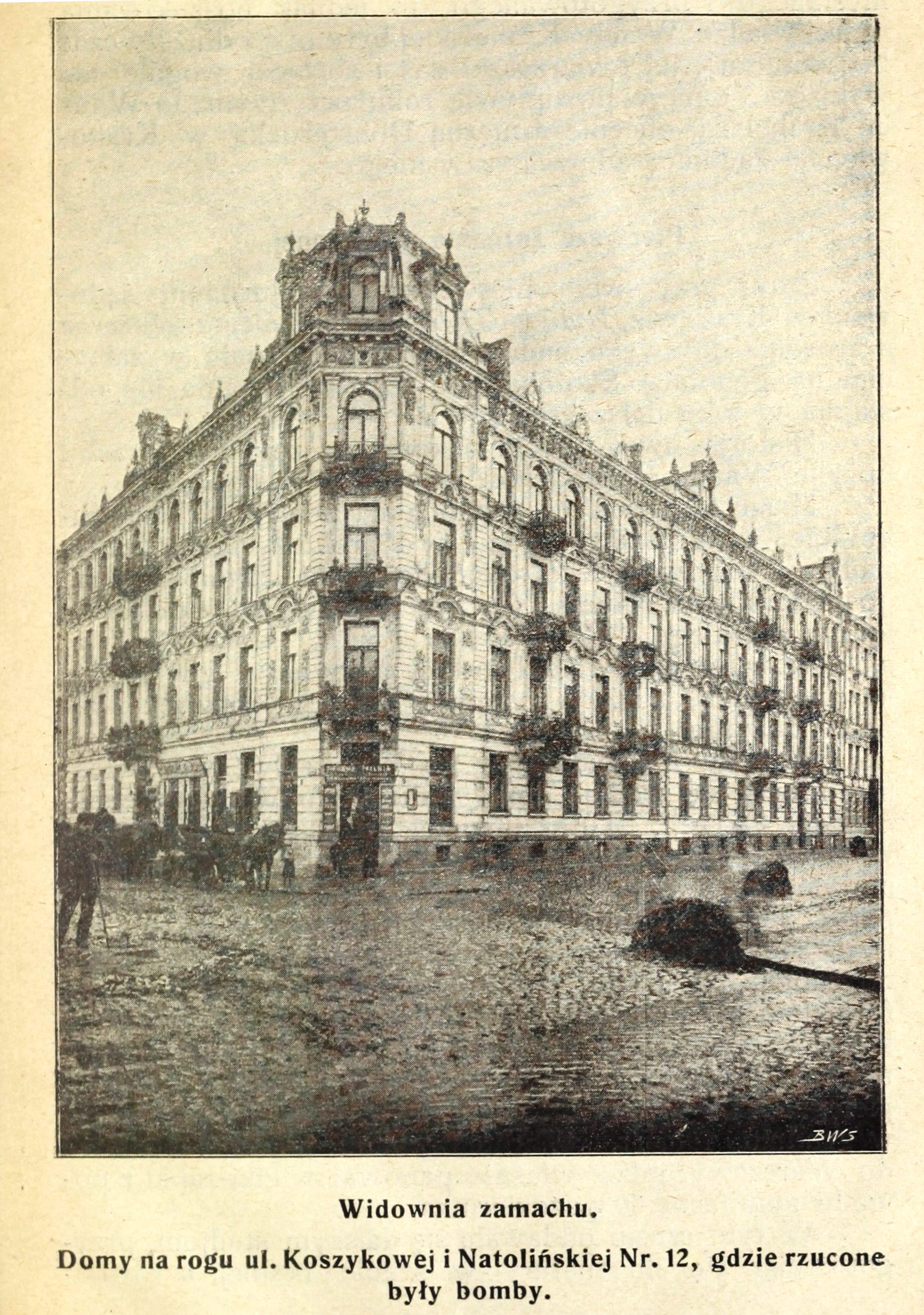 , "Widownia zamachu. Domy na rogu ul. Koszykowej i Natolińskiej Nr. 12, gdzie rzucone były bomby"., [w:] Polski słownik biograficzny, t. ,