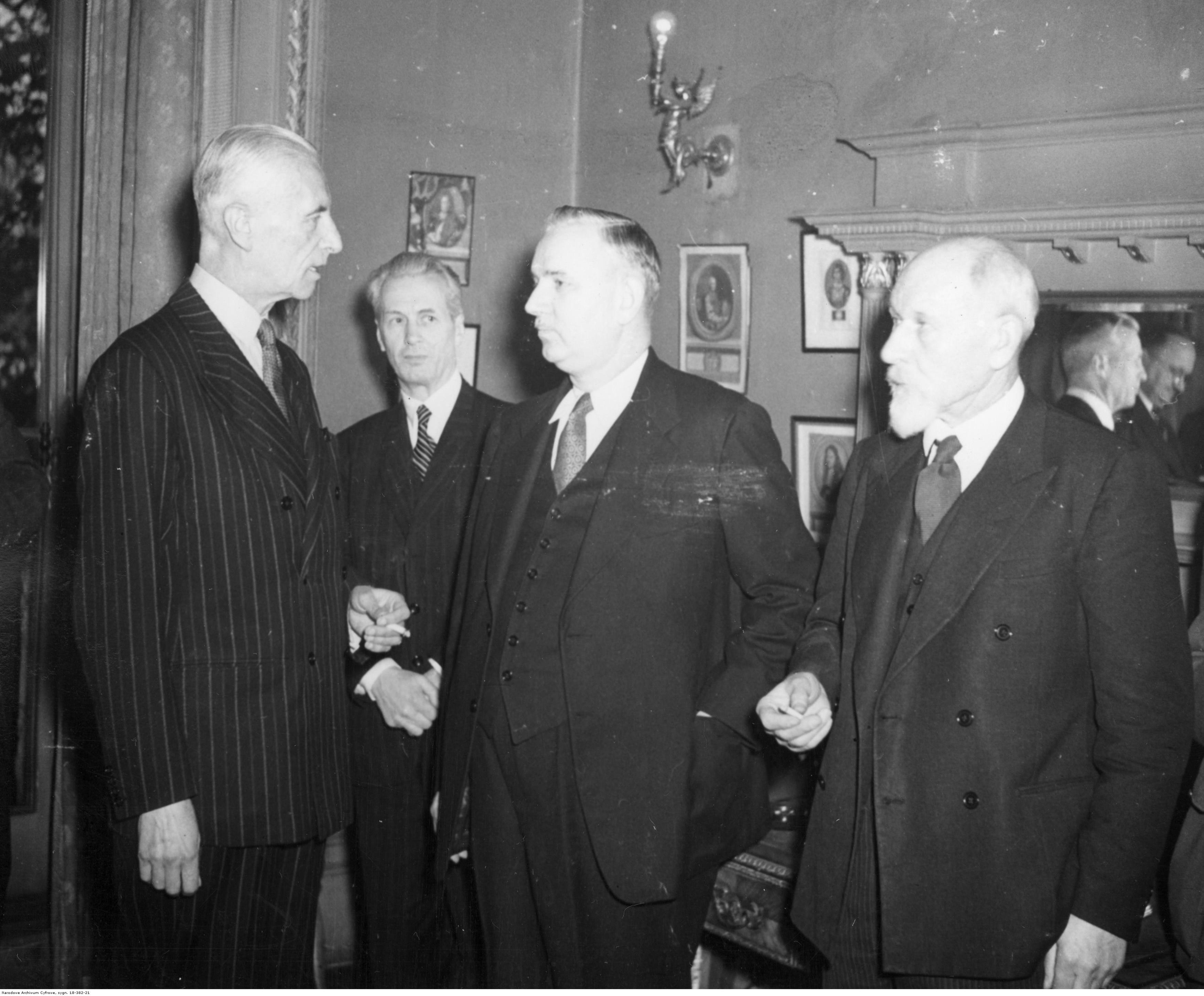 Wizyta prezesa Kongresu Polonii Amerykańskiej Karola Rozmarka w Londynie w 1945 roku. share Podziel się facebook google + twitter linkedin clipboard envelope print quote picture add × Cytowane źródła Cytowanie źródła on-line, czyli Internetowego Polskiego Słownika Biograficznego Wizyta prezesa Kongresu Polonii Amerykańskiej Karola Rozmarka w Londynie w 1945 roku., [online] Warszawa: Narodowy Instytut Audiowizualny [dostęp 13.04.2026]. Dostępny w internecie: http://www.ipsb.nina.gov.pl/a/foto/wizyta-prezesa-kongresu-polonii-amerykanskiej-karola-rozmarka-w-londynie-w-1945-roku-3 Cytowanie wydania drukowanego, czyli Polskiego Słownika Biograficznego , Wizyta prezesa Kongresu Polonii Amerykańskiej Karola Rozmarka w Londynie w 1945 roku., [w:] Polski słownik biograficzny, t. , IPSBID: ipsb-fo-82630 × Wyślij link do strony E-mail odbiorcy wiadomości: To pole jest wymaganeWpisz poprawny adres e-mail Twój adres e-mail: To pole jest wymaganeWpisz poprawny adres e-mail Podgląd wiadomości, która zostanie wysłana: Witaj, [Tutaj podany Twój e-mail] poleca Ci treść z iPSB (internetowym Polskim Słowniku Biograficznym) Wizyta prezesa Kongresu Polonii Amerykańskiej Karola Rozmarka w Londynie w 1945 roku. × Dodaj do kolekcji wybierz kolekcję, do której chcesz dodać ten artykuł: lub wpisz nazwę nowej kolekcji, do której chcesz dodać ten artykuł: : To pole jest wymagane Dodaj do kolekcji Wybierz kolekcję Swoje kolekcje znajdziesz w profilu. Wystarczy kliknąć ikonę zębatego koła w górnym prawym rogu. Możesz je zobaczyć tu: moje kolekcje. × Dodaj do kolekcji Element został dodany do Twojej kolekcji. Swoje kolekcje możesz zobaczyć tu: moje kolekcje. × Dodaj do kolekcji Aby dodawać materiały do kolekcji musisz się zalogować. OPIS POSTACI POWIąZANE Spotkanie Karola Rozmarka z władzami emigracyjnymi. Od lewej: prezydent Władysław Raczkiewicz, NN, NN, premier Tomasz Arciszewski. Fotografia Czesława Datki. Postaci powiązane Władysław Raczkiewicz 1885-01-28 - 1947-06-06 prezydent RP na uchodźstwie Tomasz Stefan Arciszewski 1877-11-04 - 1955-11-20 polityk socjalistyczny więcej >> Zobacz zdjęcie w najwyższej jakości Źródło