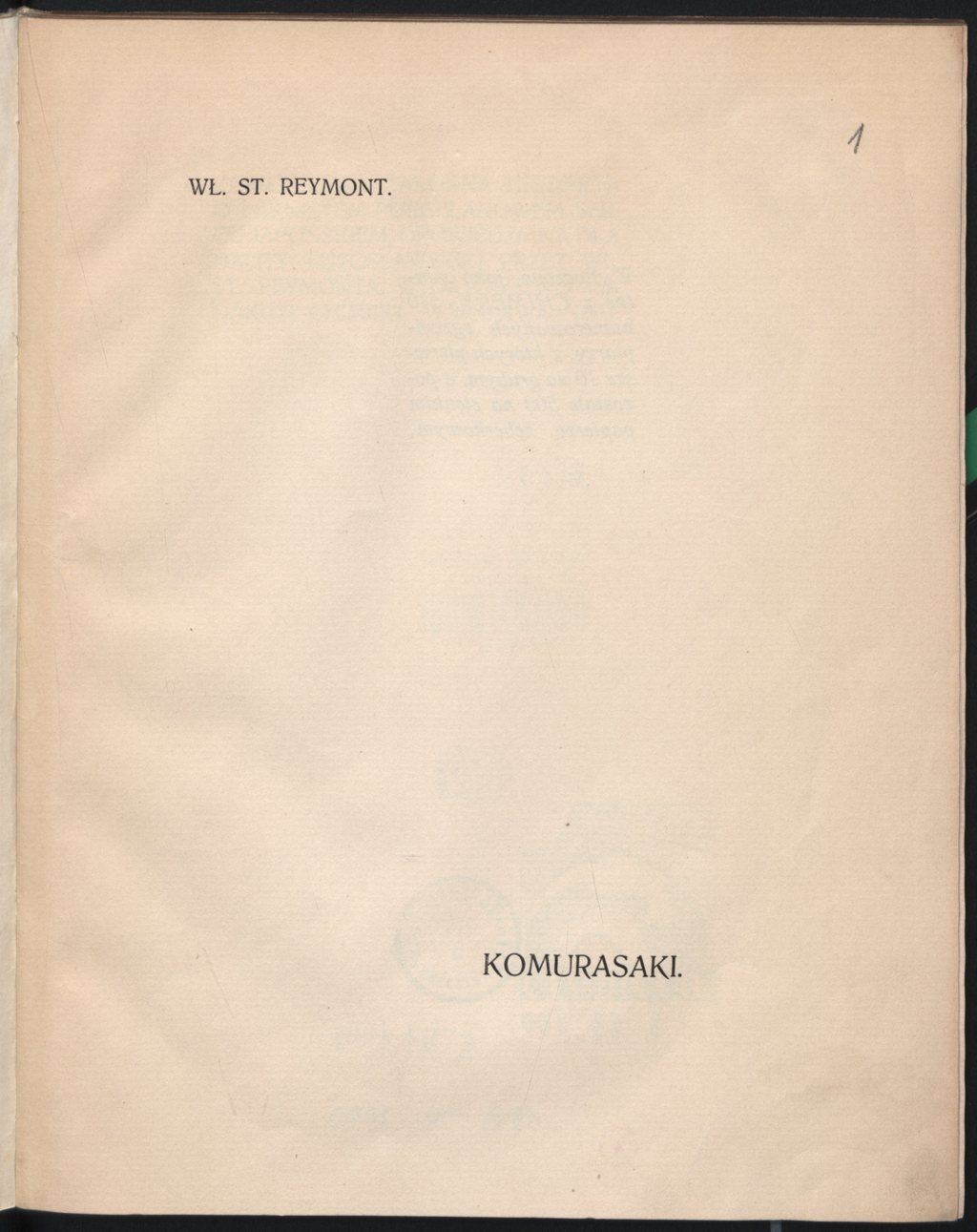 , Władysław Stanisław Reymont "Komurasaki: żałosna historya o pękniętem porcelanowem sercu japońskiem, opowiedziana dla Hality Lutosławskiej" (strona tytułowa), [w:] Polski słownik biograficzny, t. ,