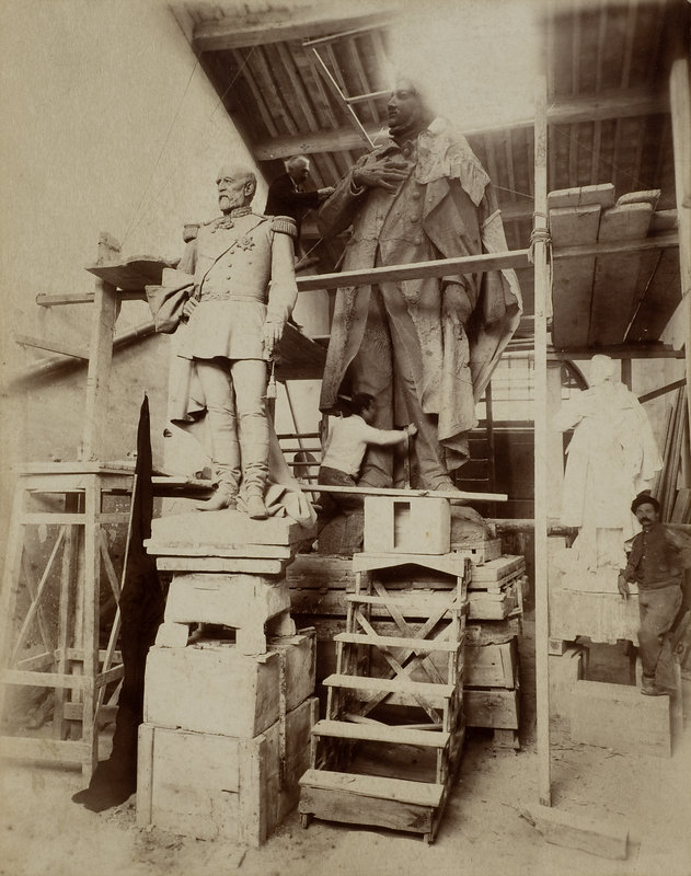 Wnętrze pracowni rzeźbiarskiej Cypriana Godebskiego w Carrarze - artysta pracujący nad pomnikiem Adama Mickiewicza dla Warszawy., [online] Warszawa: Narodowy Instytut Audiowizualny [dostęp 13.04.2026]. Dostępny w internecie: http://www.ipsb.nina.gov.pl/a/foto/wnetrze-pracowni-rzezbiarskiej-cypriana-godebskiego-w-carrarze-artysta-pracujacy-nad-pomnikiem-adama-mickiewicza-dla-warszawy