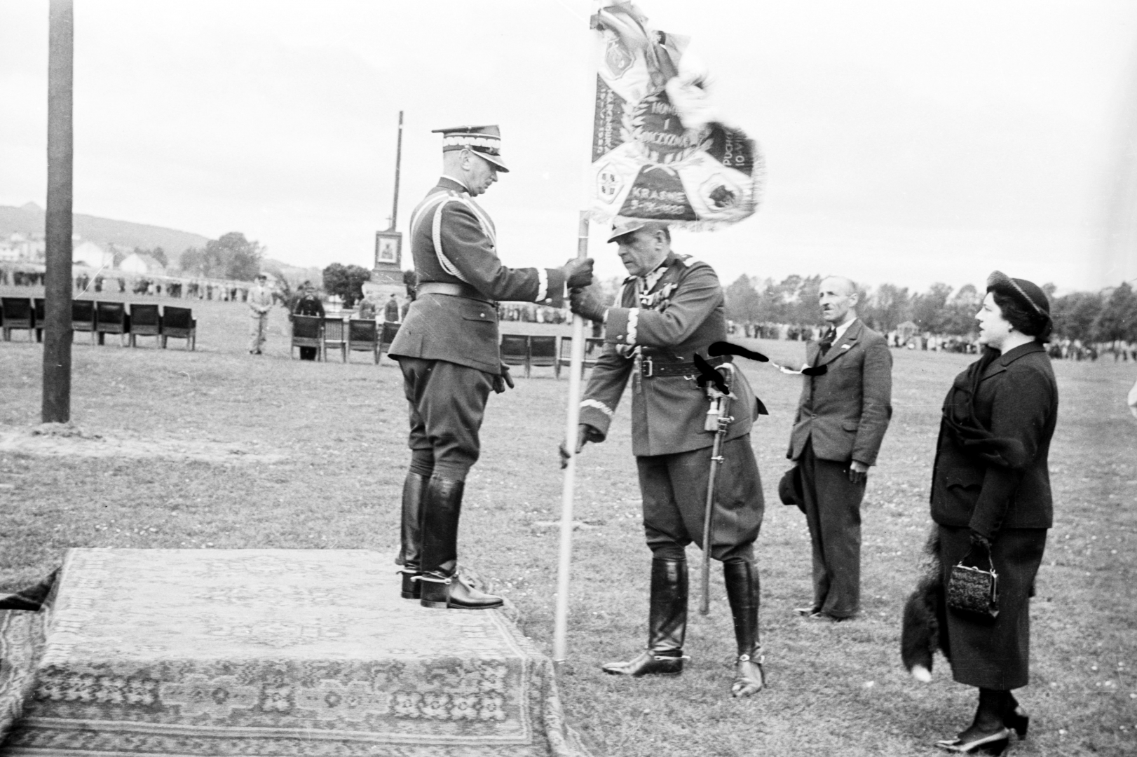 Wręczenie i poświęcenie sztandarów pułkom artylerii na Krakowskich Błoniach 29.05.1938 r. (2), [online] Warszawa: Narodowy Instytut Audiowizualny [dostęp 13.04.2026]. Dostępny w internecie: http://www.ipsb.nina.gov.pl/a/foto/wreczenie-i-poswiecenie-sztandarow-pulkom-artylerii-na-krakowskich-bloniach-29051938-r-2