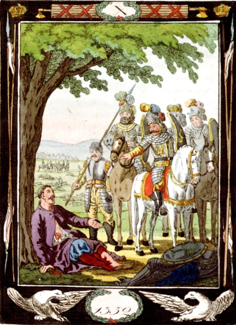 X. Rok 1332. (Ranny w bitwie pod Płowcami rycerz Florian Szary mówi królowi Władysławowi Łokietkowi, że bardziej boli zły sąsiad niż rany.), [online] Warszawa: Narodowy Instytut Audiowizualny [dostęp 27.02.2026]. Dostępny w internecie: http://www.ipsb.nina.gov.pl/a/foto/x-rok-1332-ciezko-ranny-w-bitwie-pod-plowcami-rycerz-florian-szary-mowi-krolowi-wladyslawowi-lokietkowi-ze-bardziej-boli-zly-sasiad-niz-rany