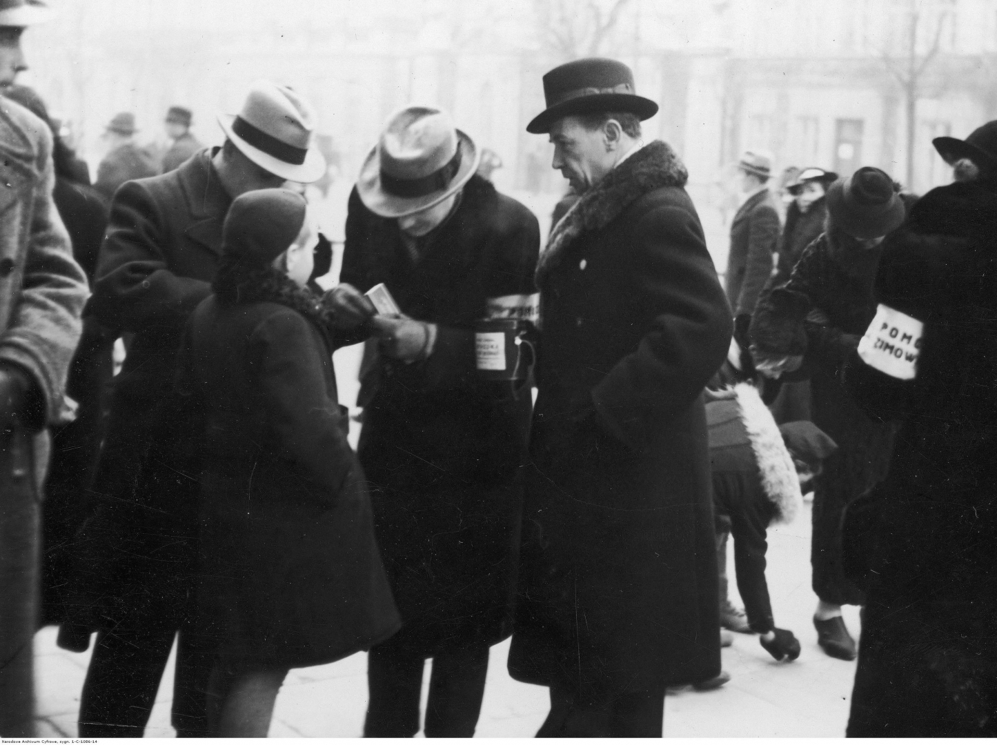 Zbiórka pieniędzy w Warszawie na rzecz pomocy bezrobotnym pod hasłem "gwiazdka dla dzieci bezrobotnych" 19.12.1937 r., [online] Warszawa: Narodowy Instytut Audiowizualny [dostęp 13.04.2026]. Dostępny w internecie: http://www.ipsb.nina.gov.pl/a/foto/zbiorka-pieniedzy-w-warszawie-na-rzecz-pomocy-bezrobotnym-pod-haslem-gwiazdka-dla-dzieci-bezrobotnych-19121937-r